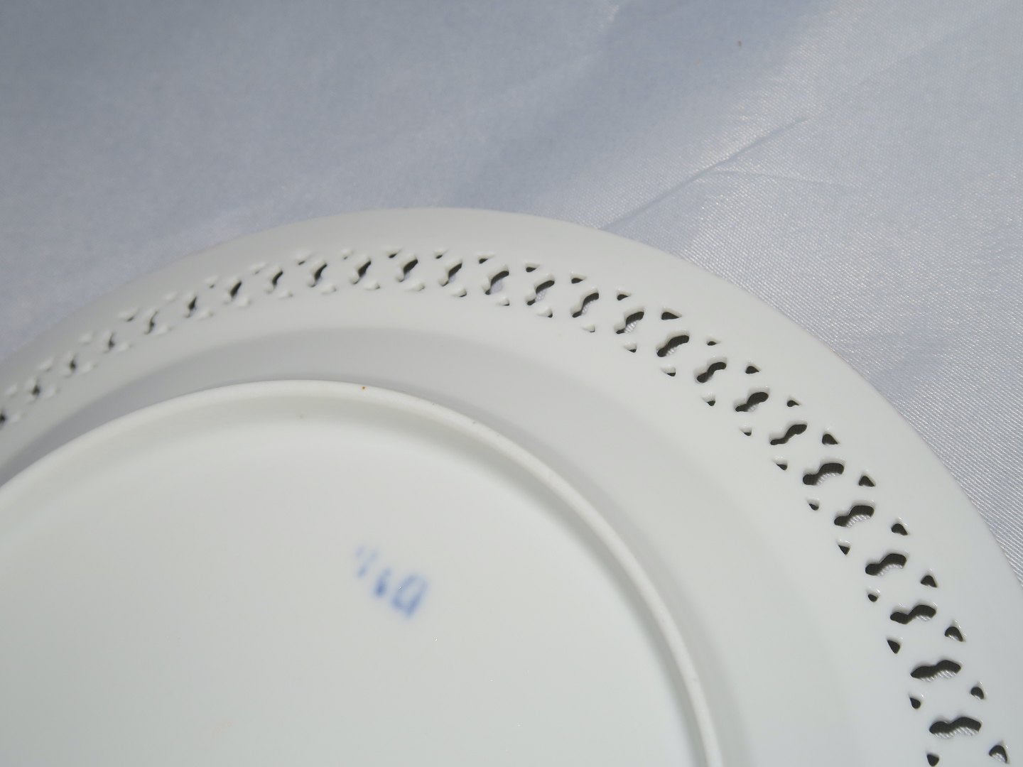 Bing & Grøndahl tallerken med lilla dekoration og gennembrudt kant.