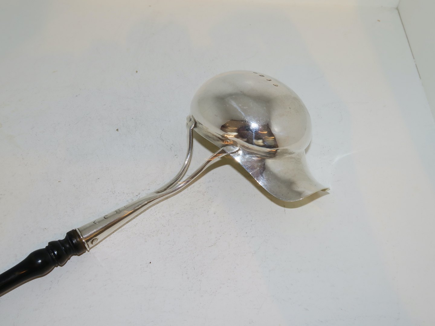 Heinrich Otto sølv, lang punchske med træskaft og forgyldt laf fra 1829.