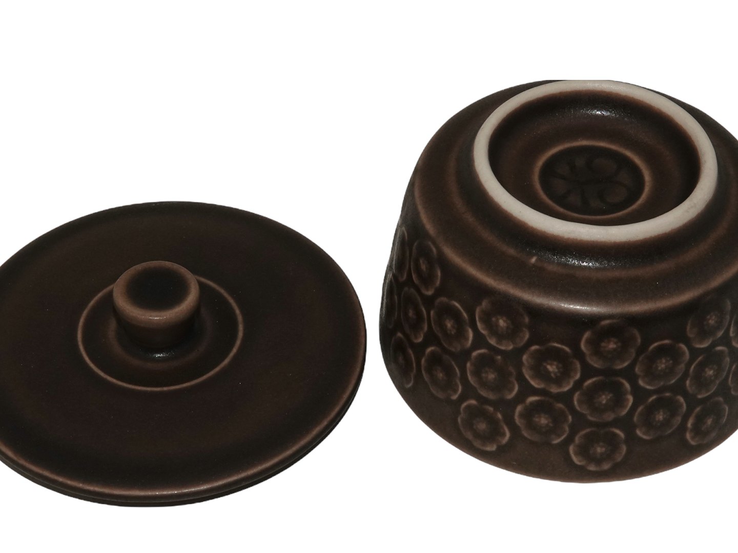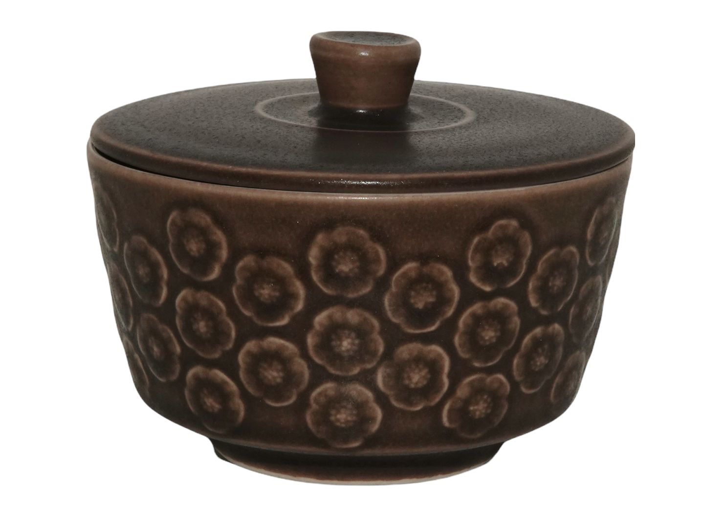Kronjyden/Bing & Grøndahl Umbra stentøj, sukkerskål med låg. Designet af Jens Harald Quistgaard. Diameter 9,0 cm. Perfekt stand uden fejl.