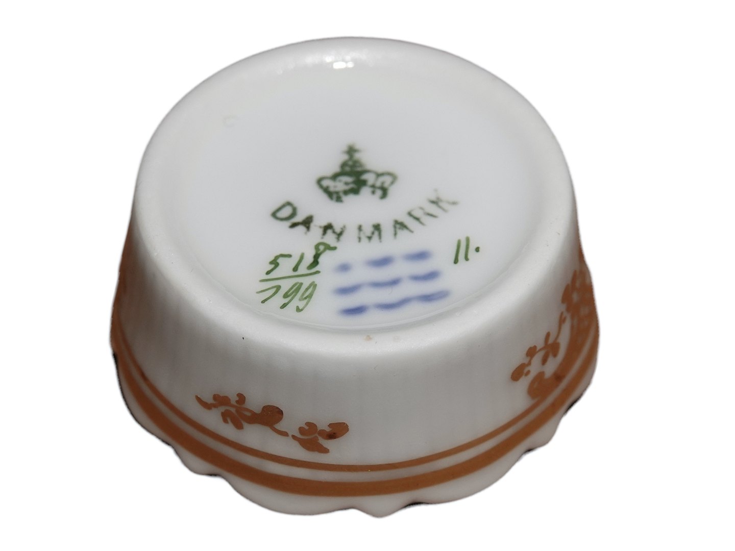 Royal Copenhagen Guldkurv med Ornamenter og Små Blomster, lille rundt saltkar.
