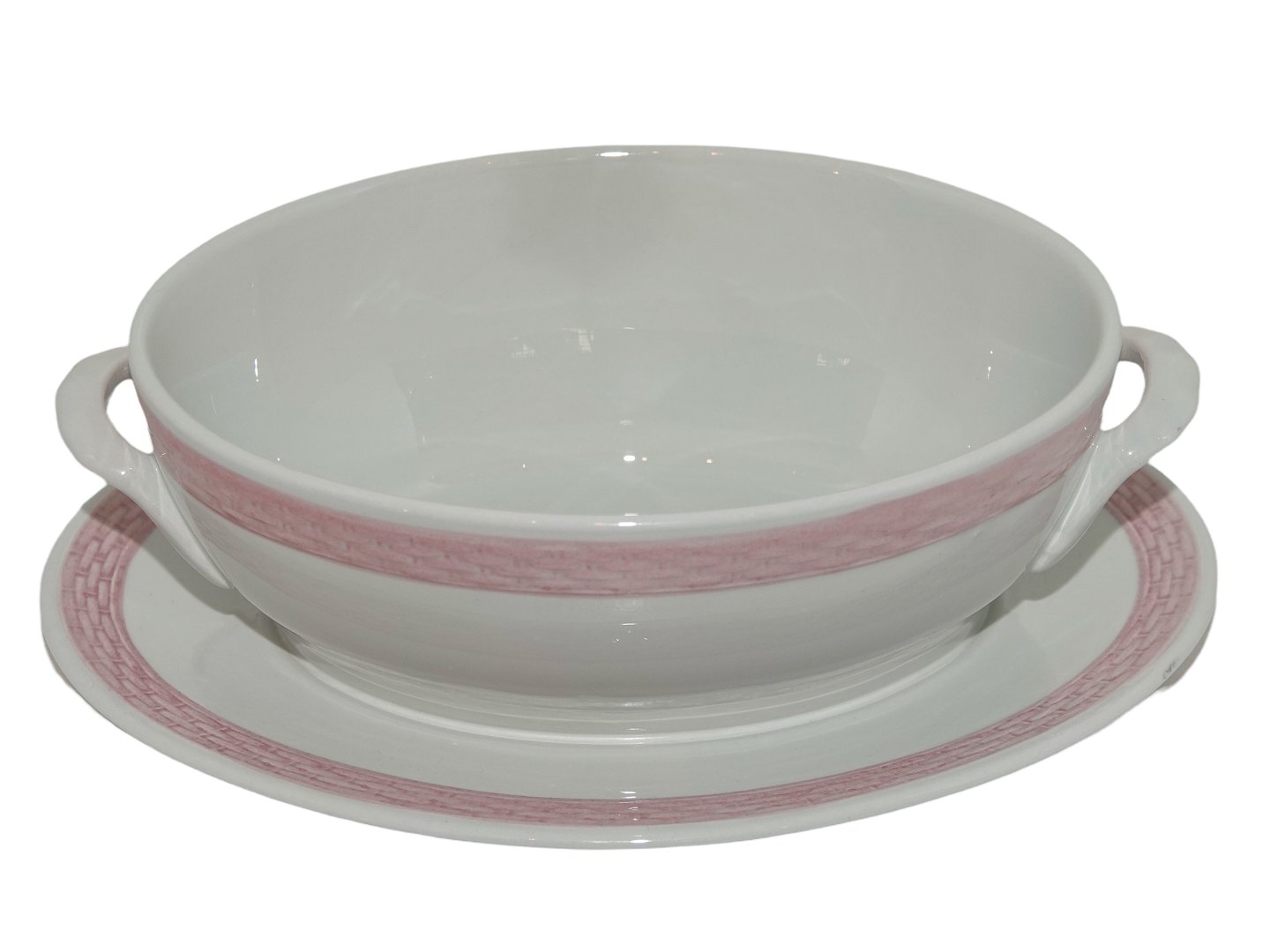 Royal Copenhagen sovseskål med låg (lille terrin) med lyserød kant.