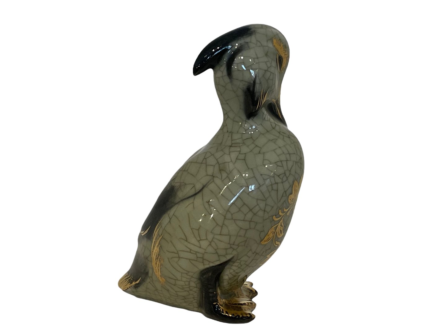 Royal Copenhagen large green Craquele with Gold, duck figurine. Decoration number 1941. Factory first. Height 11.5 cm. Perfect condition with no chips, cracks or repairs.
