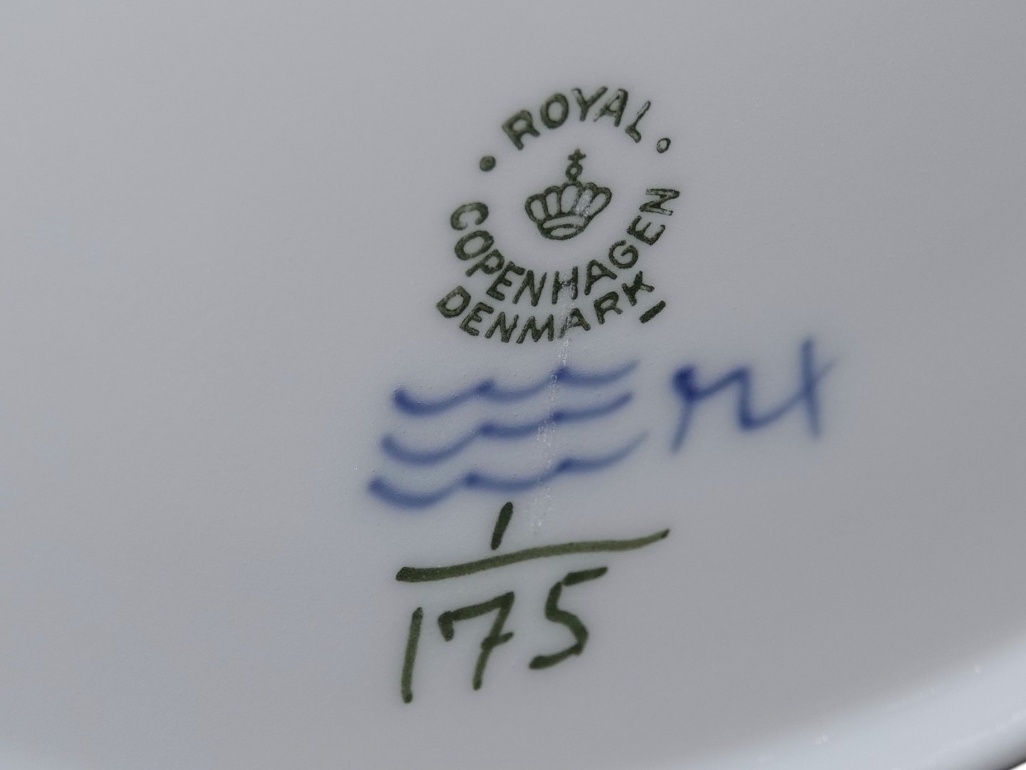Royal Copenhagen Musselmalet Riflet, stor middagstallerknen. Dekorationsnummer 1/175. 2. sortering. Diameter 25,5 cm. Perfekt stand.