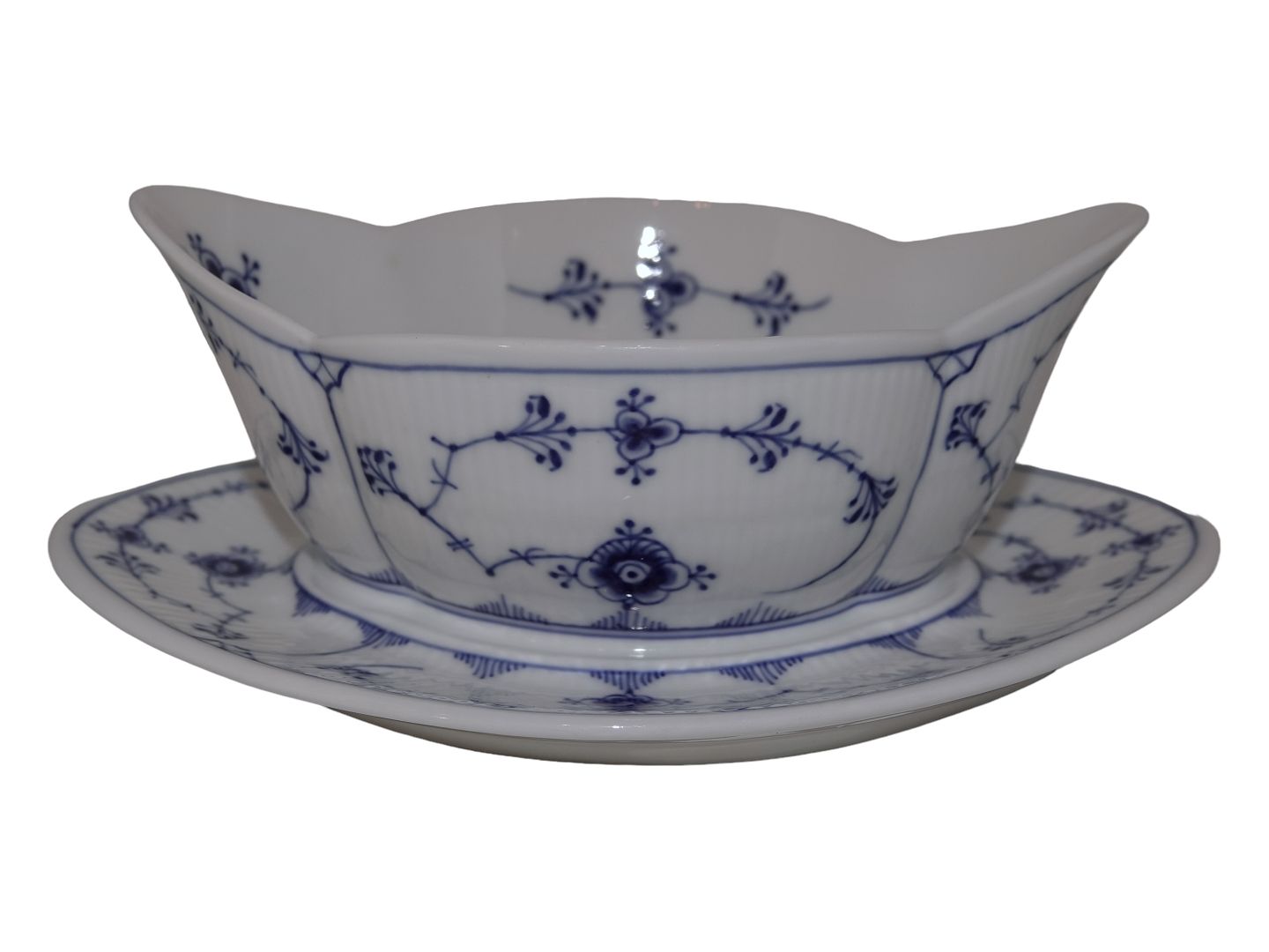 Royal Copenhagen Musselmalet Riflet Hotelporcelæn, sovseskål md tyk kant.
