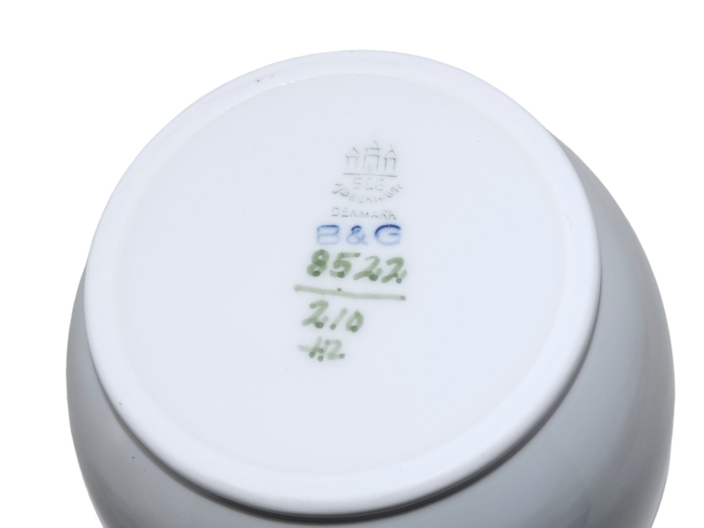 Bing & Grøndahl vase med dansk mølle. Af fabriksmærket ses det, at denne er produceret mellem 1948 og 1952. Dekorationsnummer 8522/210. 1. sortering. Højde 17,0 cm. Perfekt stand uden fejl.