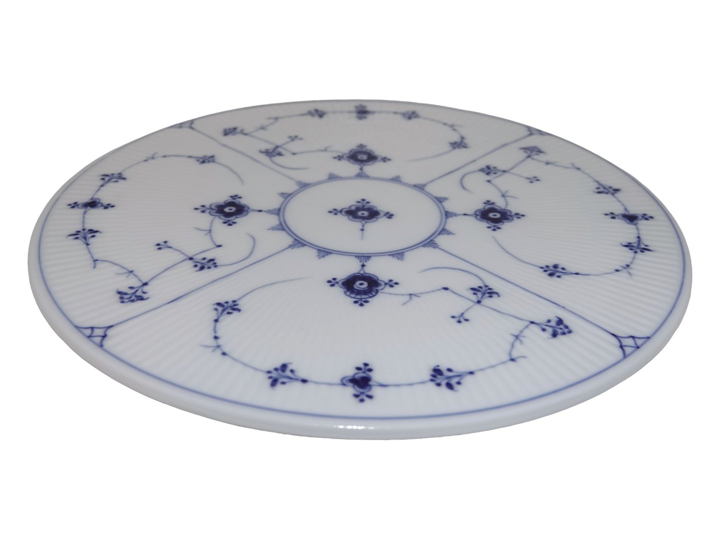 Royal Copenhagen Musselmalet Riflet, sjældent tærtefad. Af fabriksmærket ses det, at denne er produceret mellem 1898 og 1923. Dekorationsnummer 1/456. 1. sortering. Diameter 29,0 cm. Perfekt stand uden fejl.