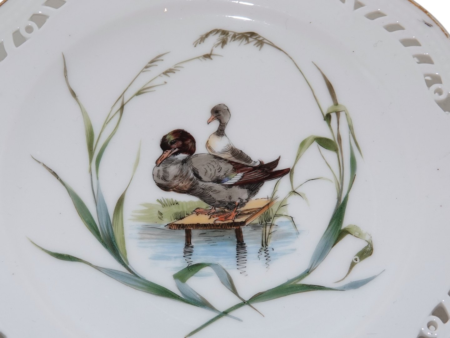 Royal Copenhagen Hvid Flora Danica også kaldet Perlestellet, frokosttallerken dekoreret med ænder.