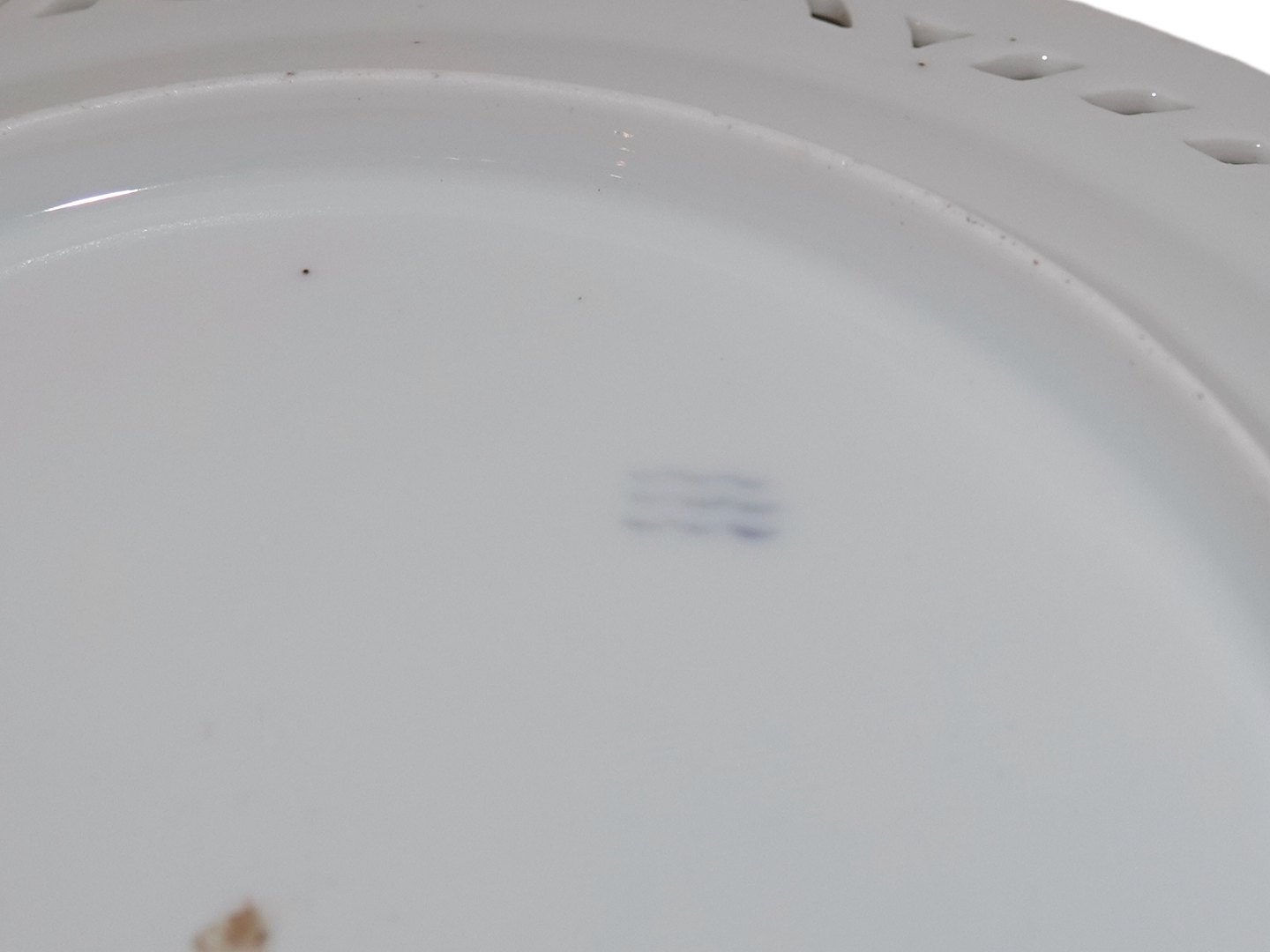 Der er et skår på kanten og guldkanten har slid, se fotos, ellers fejlfri stand.