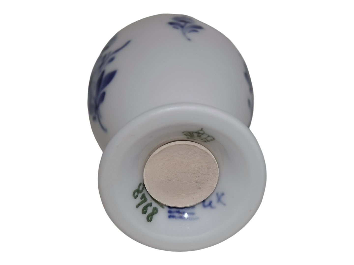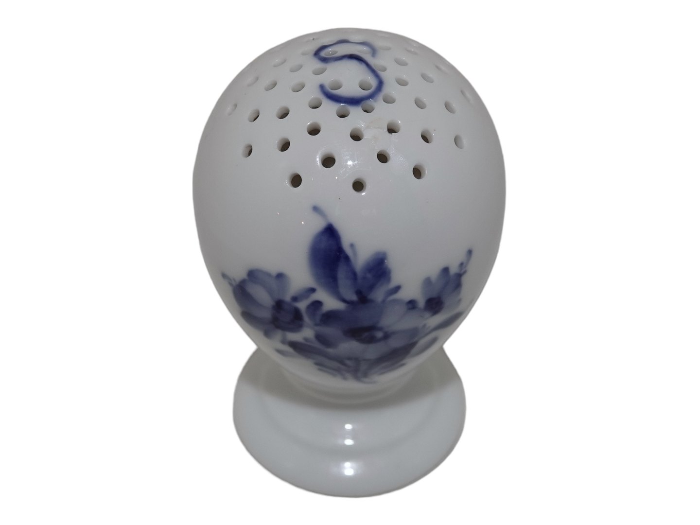 Royal Copenhagen Blå Blomst, saltbøsse i sjælden form. Dekorationsnummer 10/8768. 1. sortering. Højde 7,0 cm. Perfekt stand uden fejl.