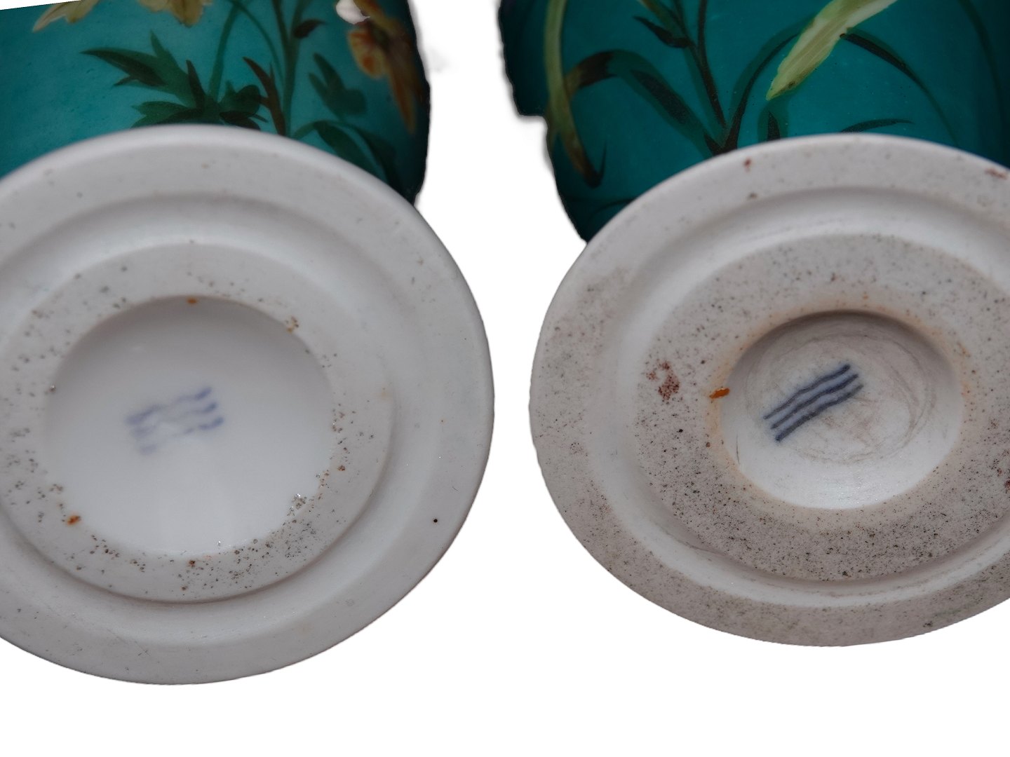 Par Royal Copenhagen tidlige grønne vaser. Den ene vase er noget lysere i den grønne farve end den anden.