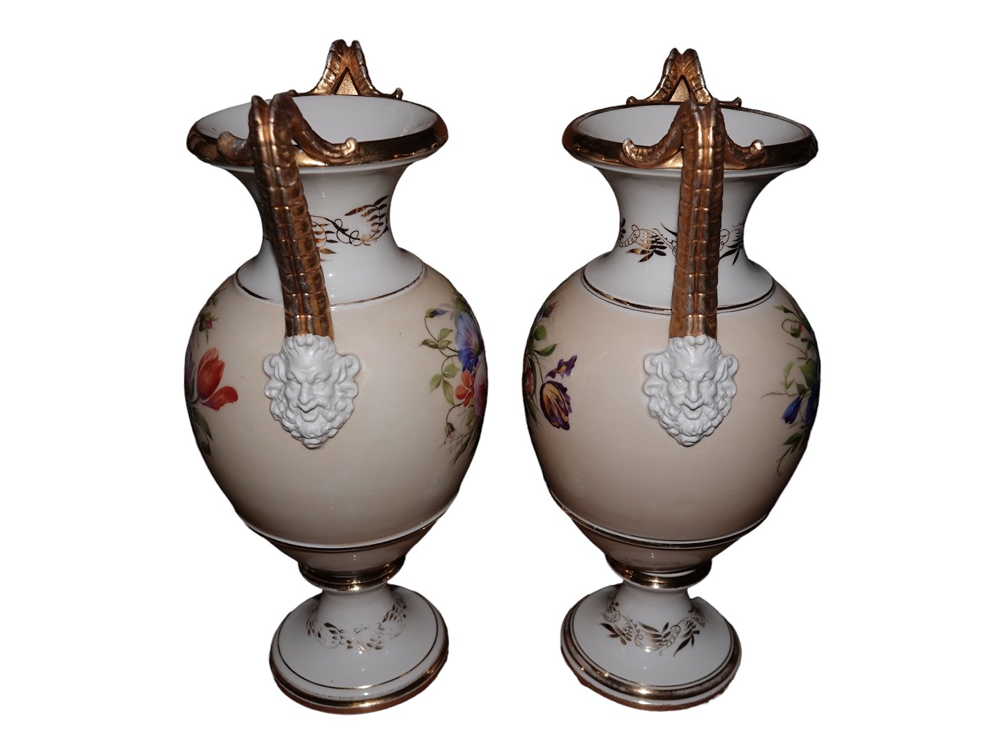 One vase has an old repair on one handle, please see the close-up picture, otherwise perfect condition.