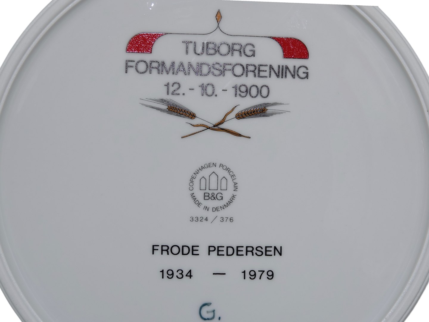 Stor Bing & Grøndahl platte, Tuborg Formandsforening med motiv af Tuborg hestevogn foran Børsen. Dekorationsnummer 3324/376. 1. sortering. Diameter 31,2 cm. Perfekt stand uden fejl.