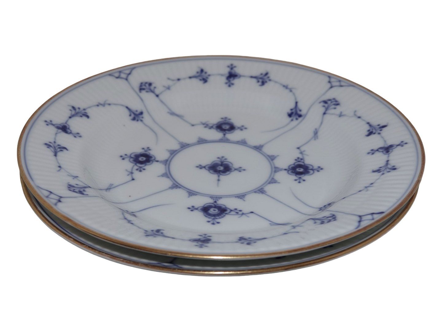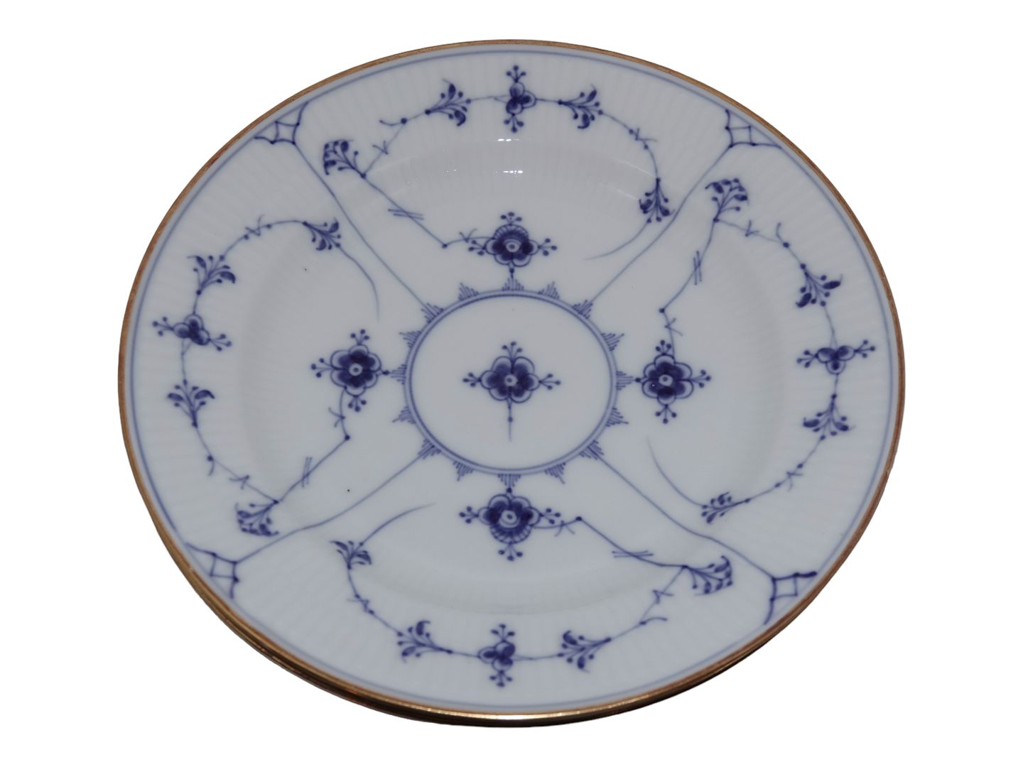 Royal Copenhagen Musselmalet Riflet med guldkant, stor middagstallerken.
