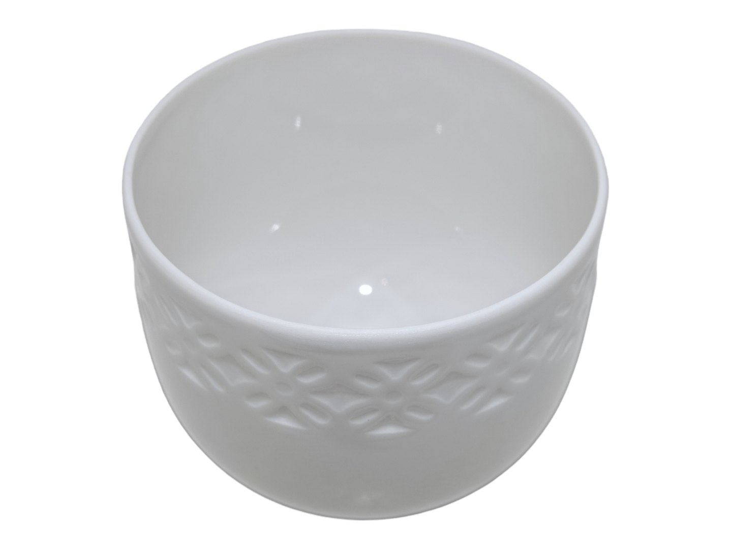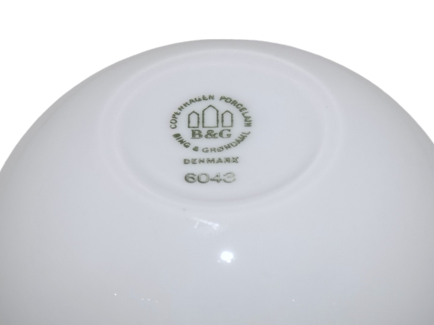 Bing & Grøndahl, mini hvid urtepotteskjuler. Denne er produceret mellem 1970 og 1983. Dekorationsnummer 6043. 1. sortering. Diameter 8,0 cm., højde 6,7 cm. Perfekt stand uden fejl.