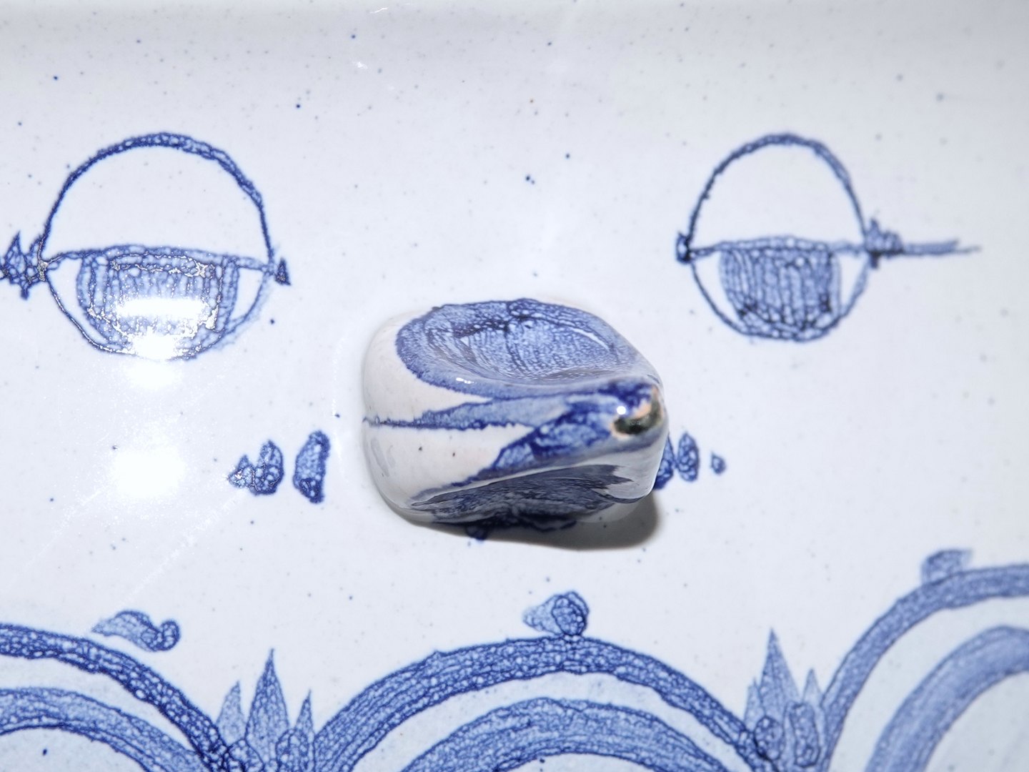 Bjørn Wiinblad keramik, rund skål i form af en fugl.