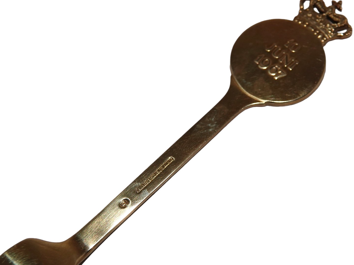 Anton Michelsen forgyldt sterlingsølv, mindegaffel fra 1967. I anledning af bryllup mellem Prinsesses Margrethe og Prins Henrik den 10. juni 1967. Designet af Egil Jensen. Længde 16,6 cm. Perfekt stand.
