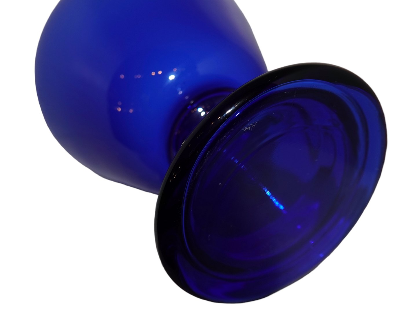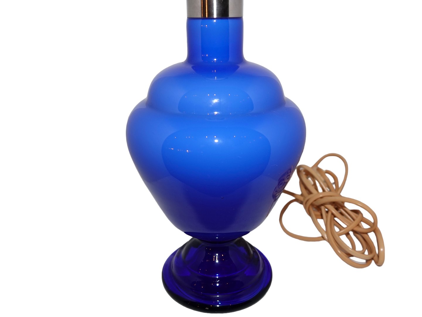 Holmegaard Florence bordlampe i blåt glas. Prototype med anderledes fod og top. Denne blev solgt til tidligere medarbejder hos Royal Copenhagen.