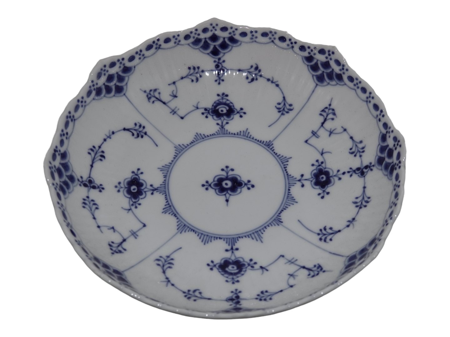 Royal Copenhagen Musselmalet Halvblonde, kageskål på fod. Fabriksmærket viser, at denne er produceret i 1968. Dekorationsnummer 1/511. 3. sortering. Diameter 17,5 cm. Perfekt stand uden fejl.
