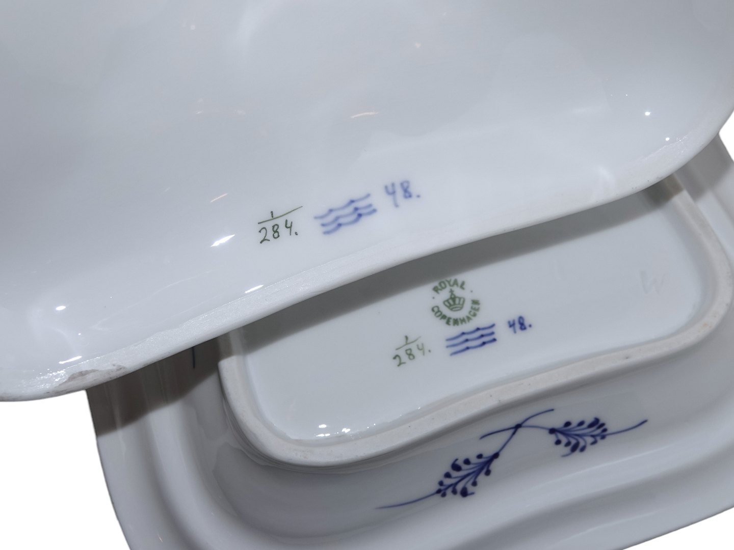 Royal Copenhagen Musselmalet Riflet, sjældent firkantet lågfad.