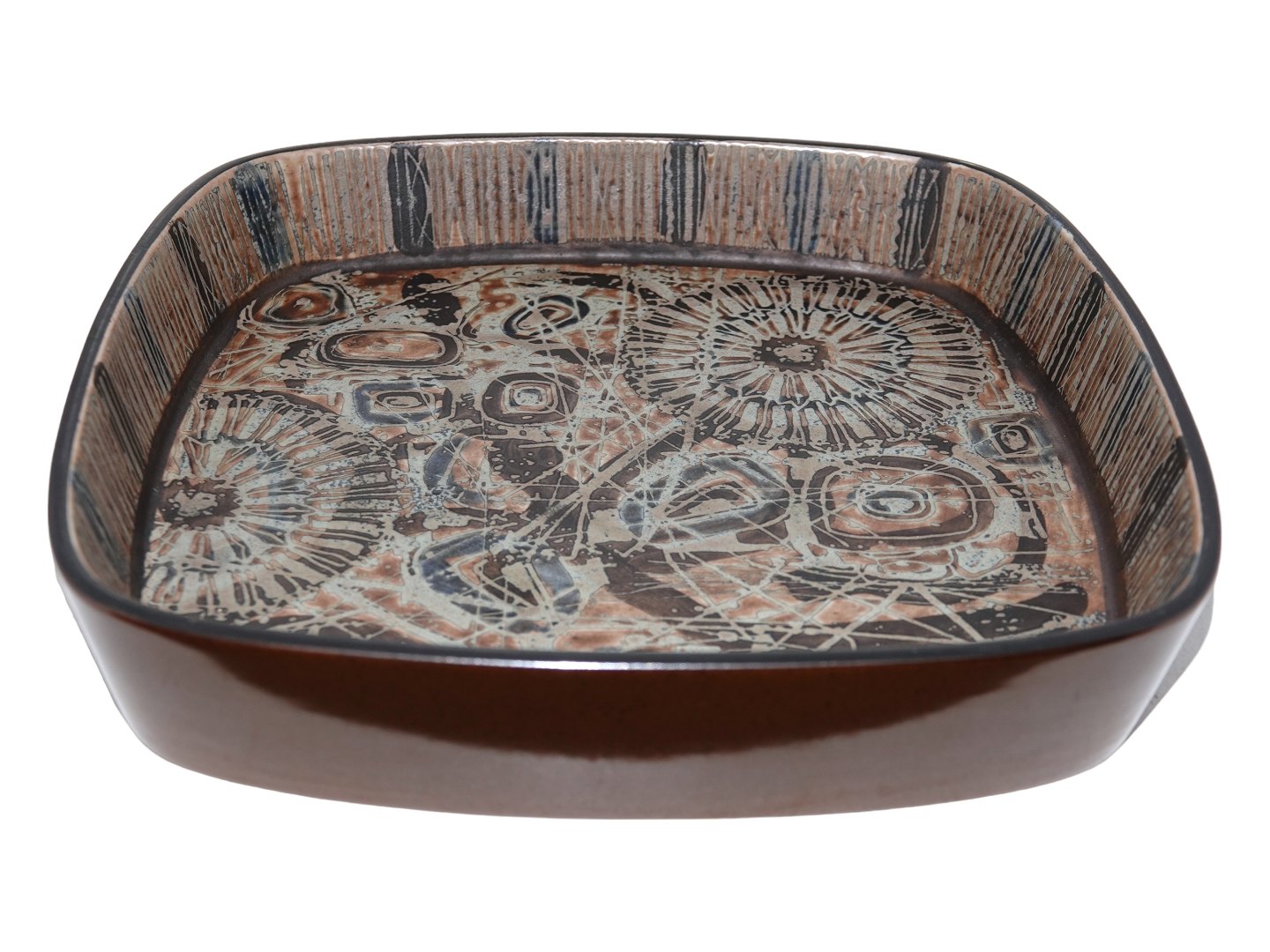 Royal Copenhagen Baca stor mørkebrun skål. Designet af Nils Thorsson. Dekorationsnummer 780/2885. 1. sortering. Måler 27 x 27 cm. Perfekt stand uden fejl.