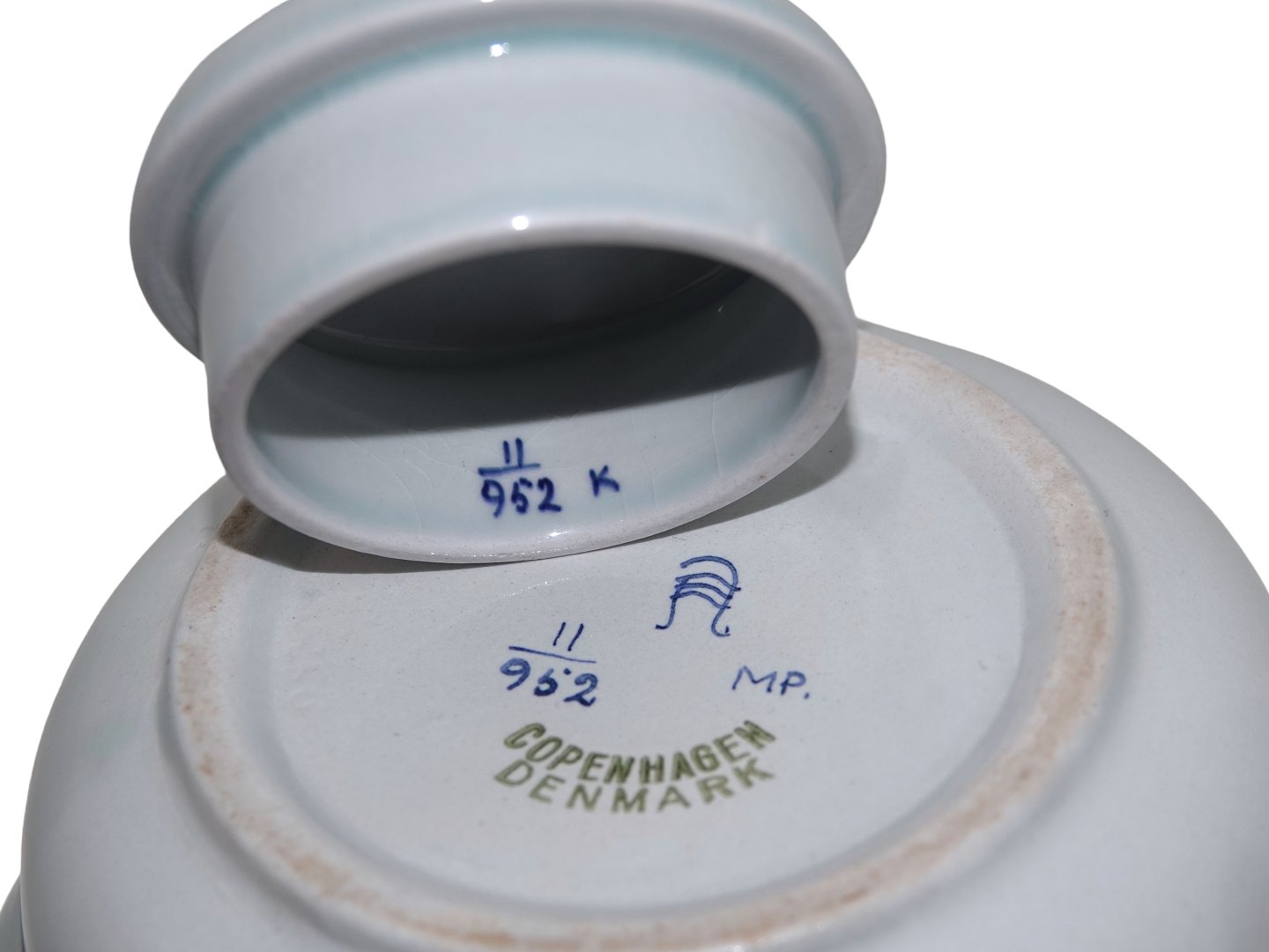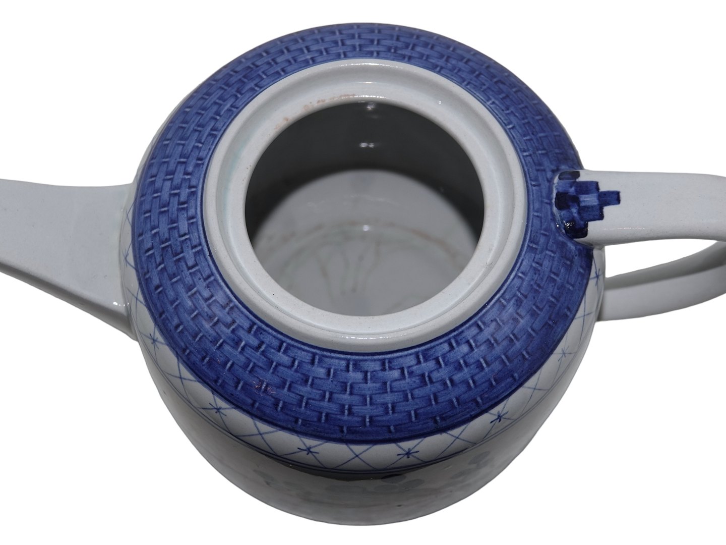 Aluminia Tranquebar, sjælden tekande. Dekorationsnummer 11/952. 1. sortering. Længde 22,5 cm. Der er lidt misfarvninger inden i kanden, se fotos, ellers perfekt stand uden fejl.