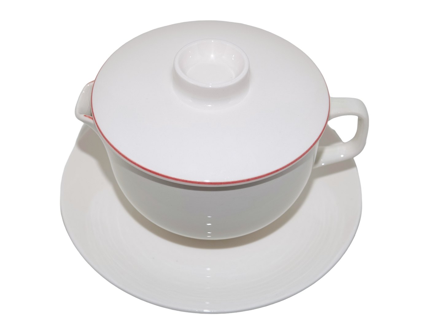 Royal Copenhagen Rødtop, sovseskål med låg. Designet af Grethe Meyer. Dekorationsnummer 3085. 1. sortering. Længde 14,8 cm. Der er misfarvning i bunden af sovseskålen, se fotos, ellers perfekt stand uden fejl.