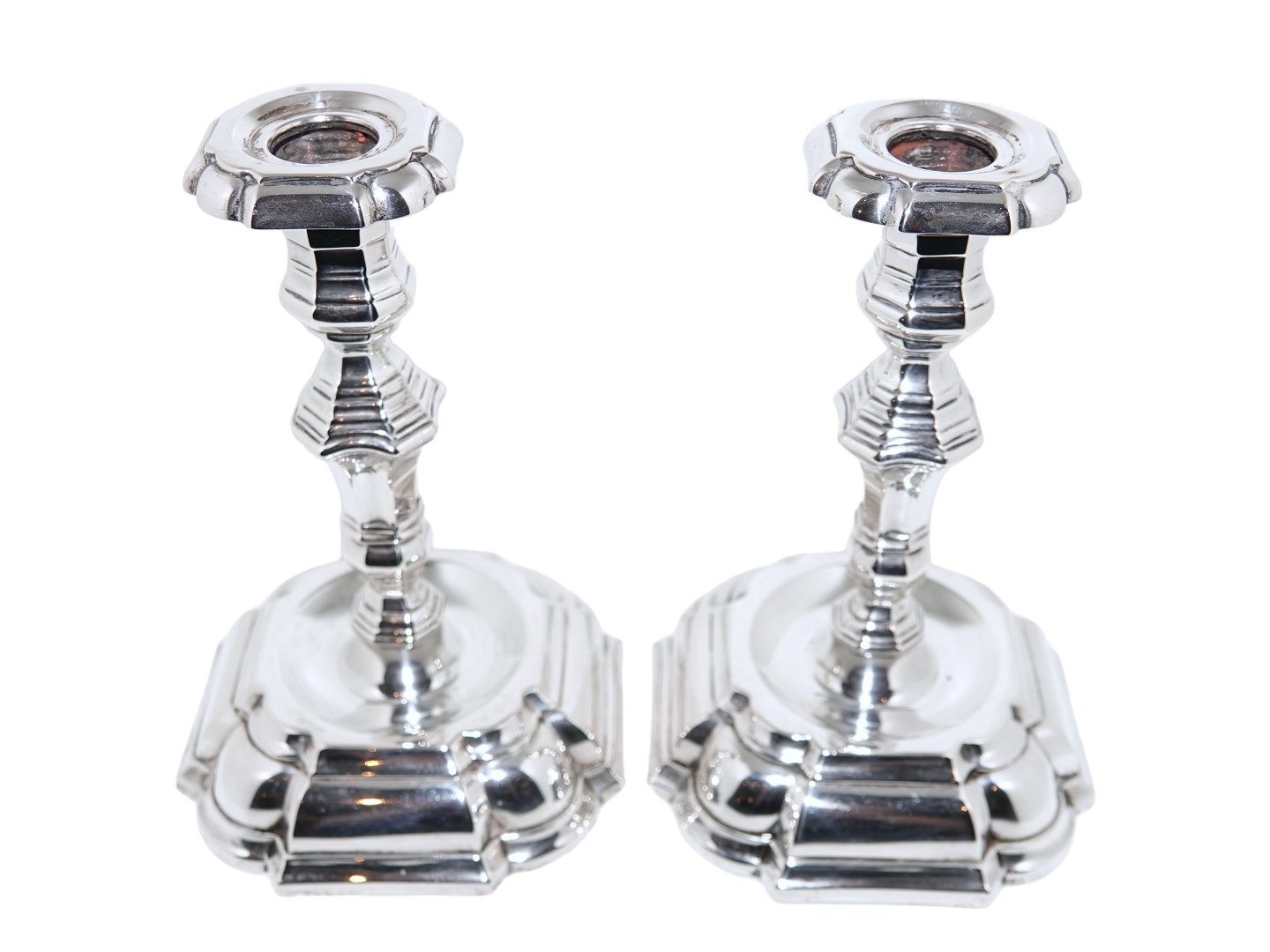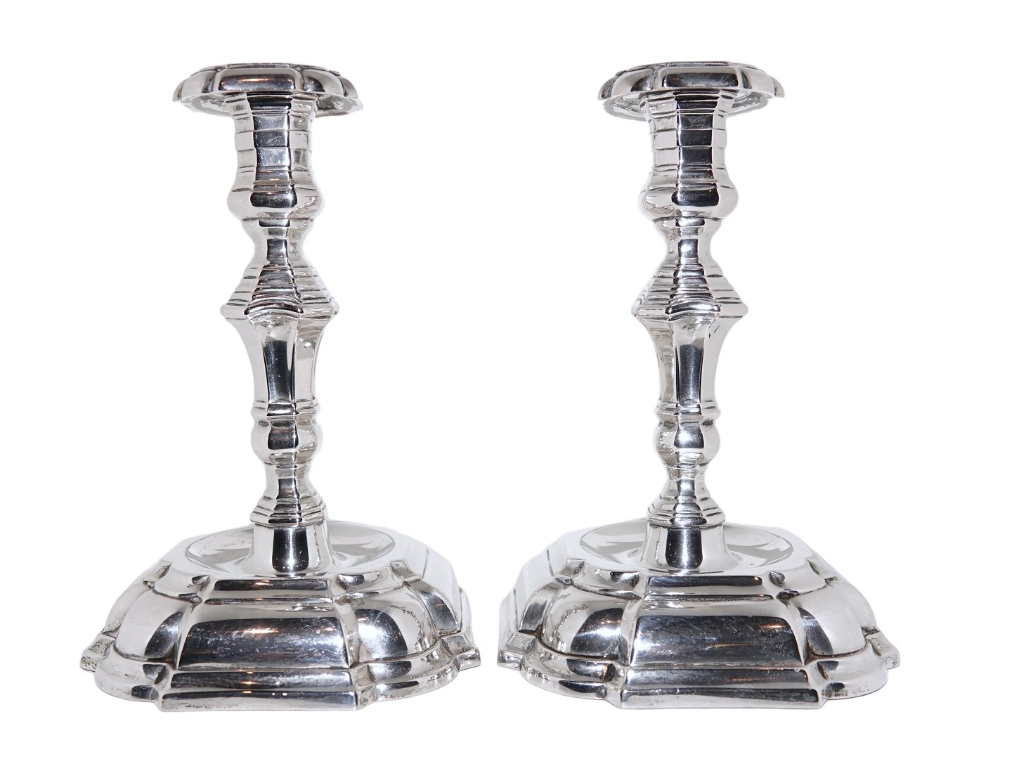 Par lysestager i sølv af sølvsmed Hugo Grün. De er til almindelige stearinlys.