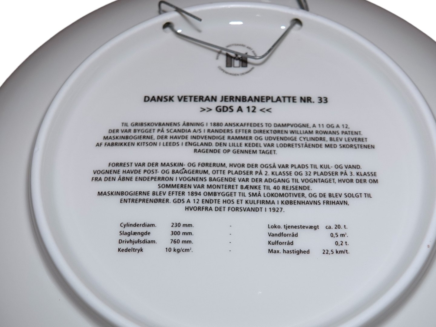 Midtgaard Art Wares togplatte, Dansk Veteranplatte No. 33 med DSB tog. Starten af serien blev lavet hos Bing & Grøndahl.