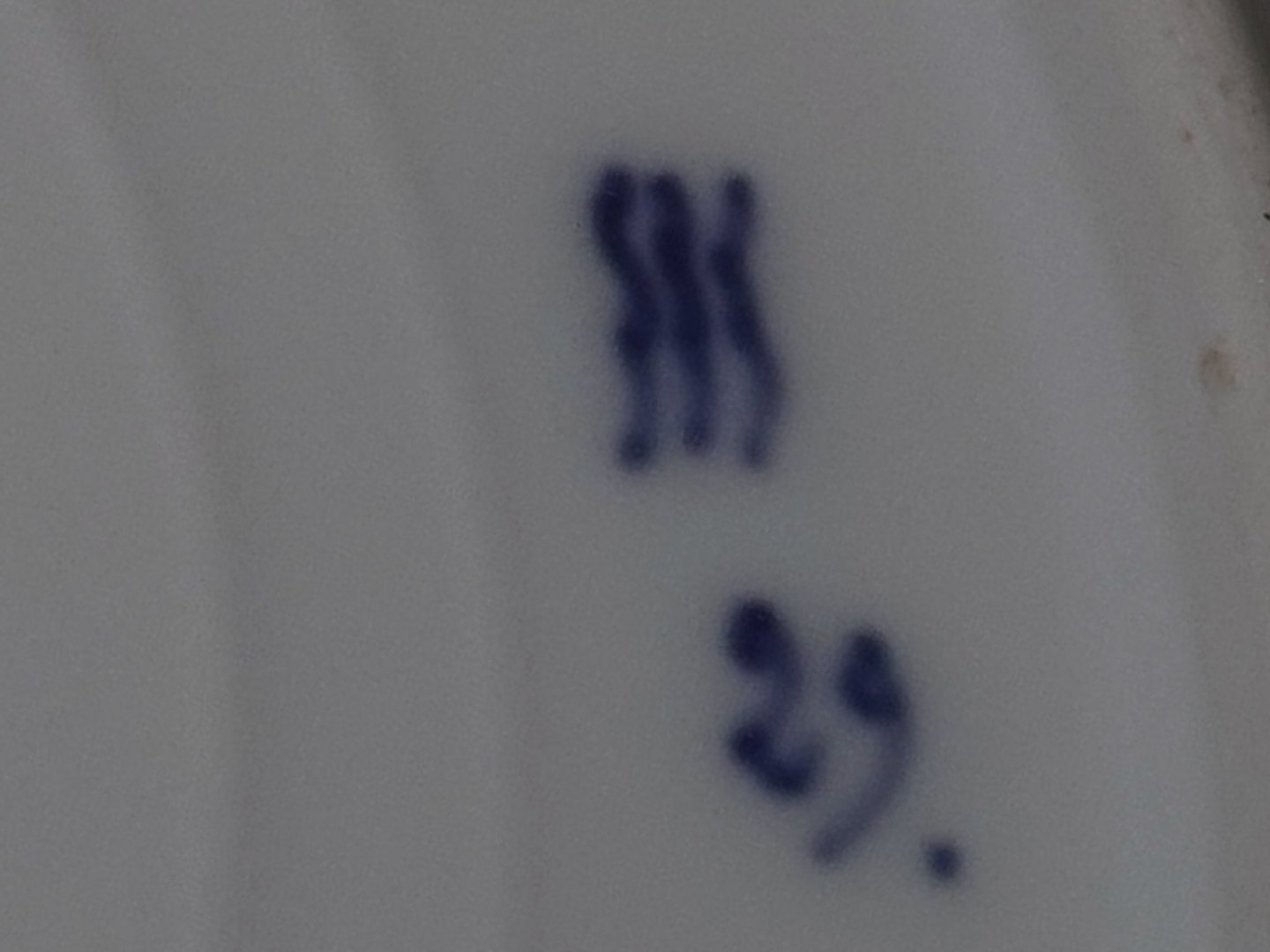 Der er lidt slid på guldkanten på selve spidserne, se fotos, ellers perfekt stand uden fejl.