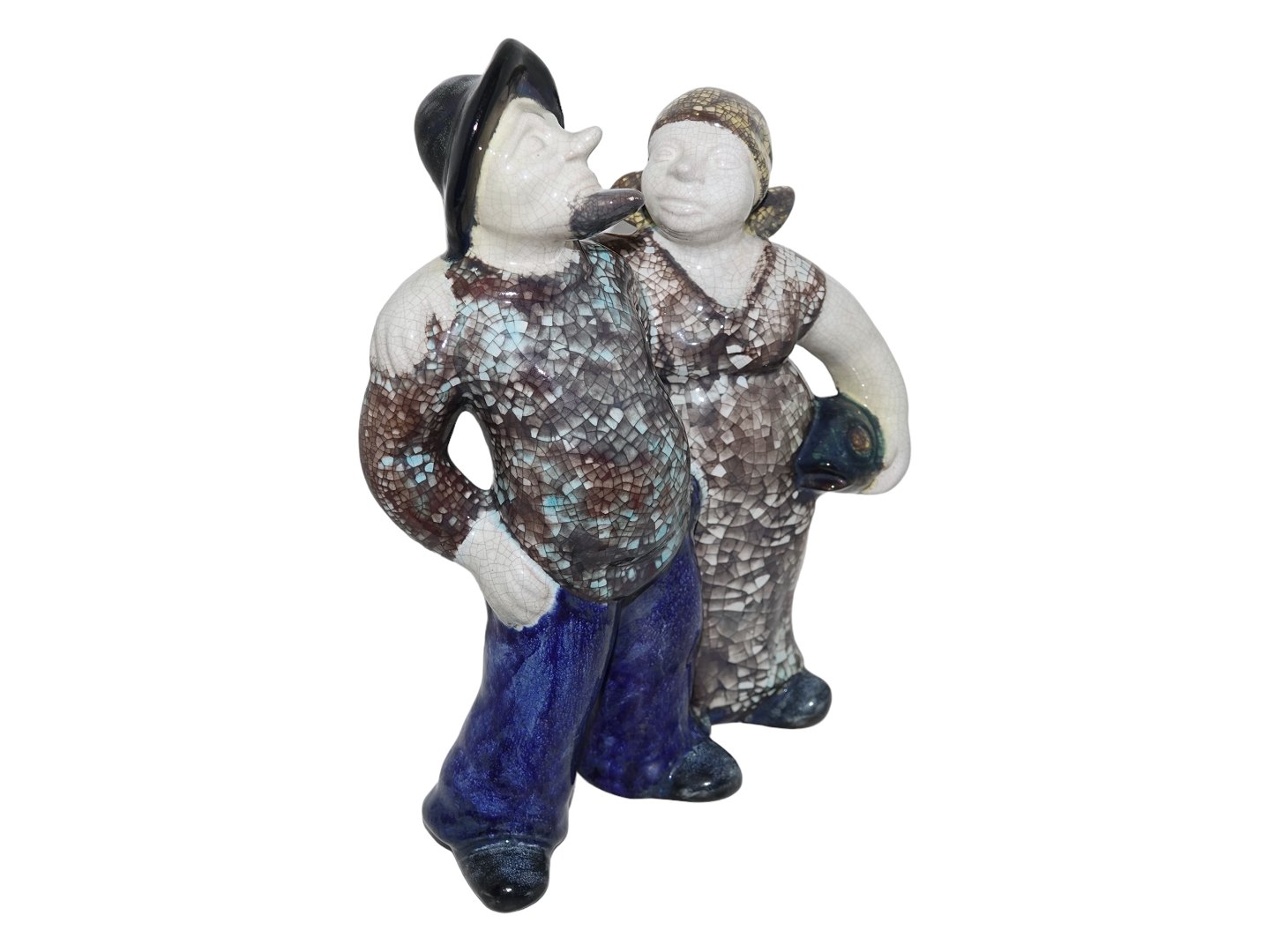 Large Michael Andersen art pottery figurine, fisherman and fisherwoman. Decoration number 3794. Height 29.5 cm., width 22.0 cm. Perfect condition.