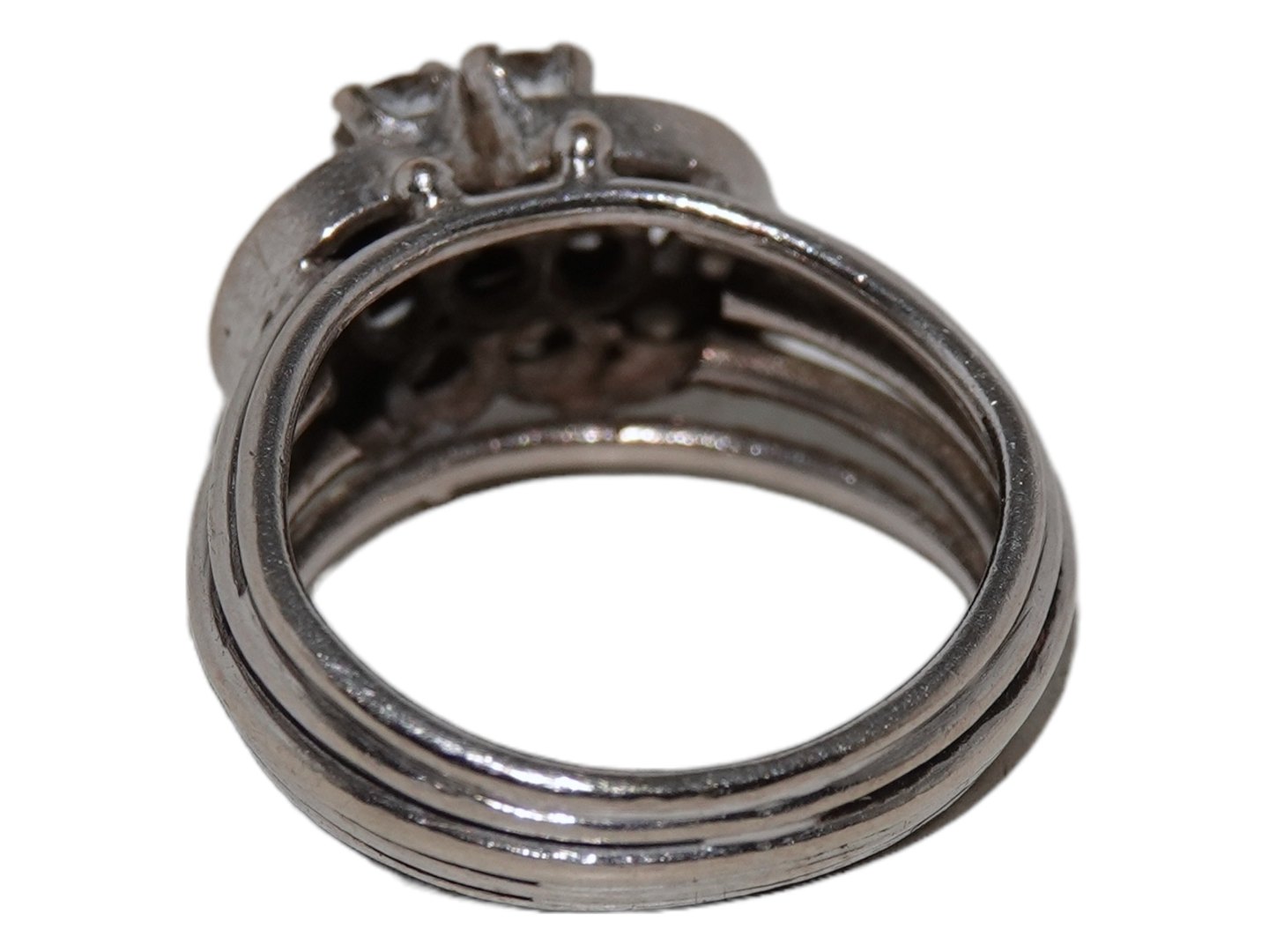 14 karat hvidguld, ring med syv (7) større og mange små diameter. Stemplet "585". Ringstørrelse 50. Fin og velholdt stand.