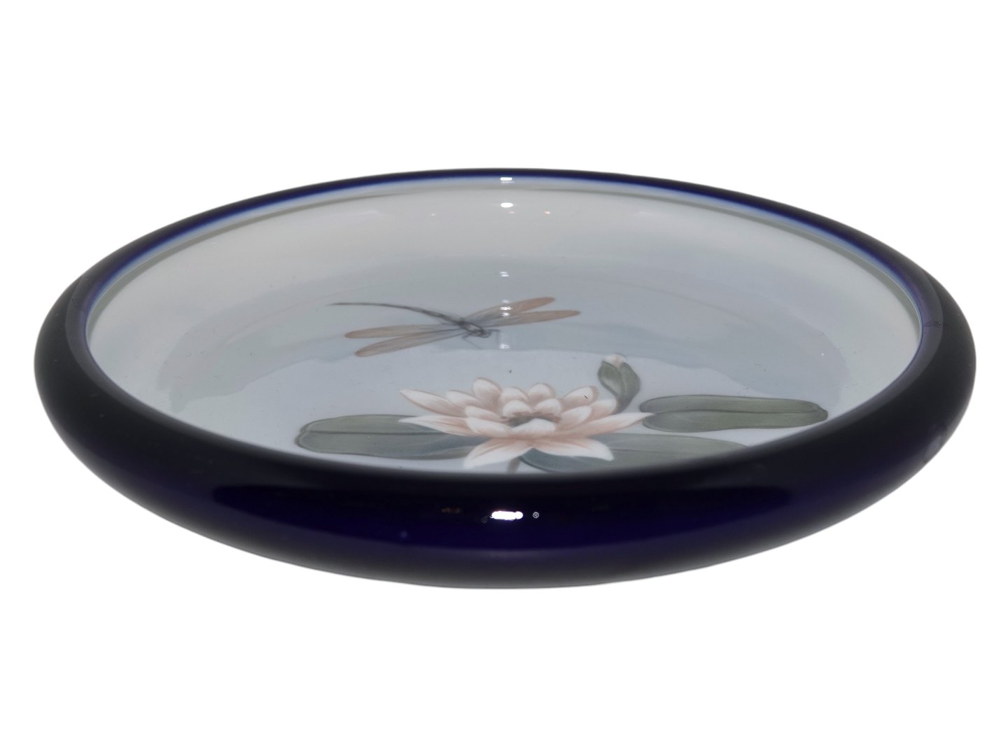 Royal Copenhagen, round dish with dragonfly and waterlily.