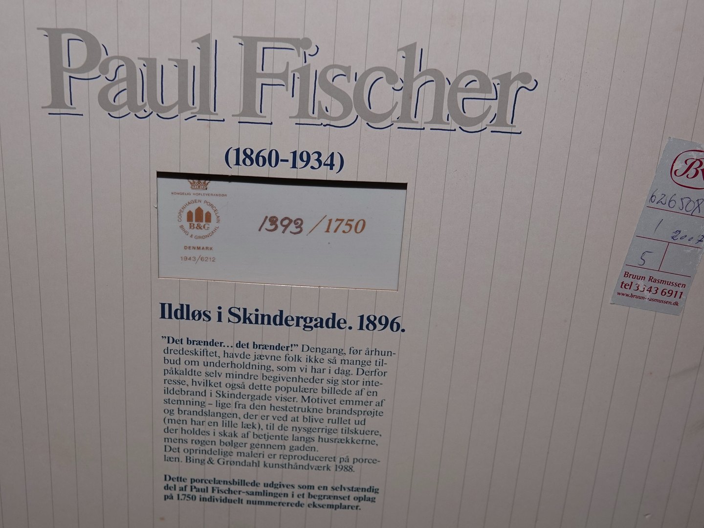 Bing & Grøndahl, porcelænsmaleri Ildløs i Skindergade efter maleri af Paul Fischer.
