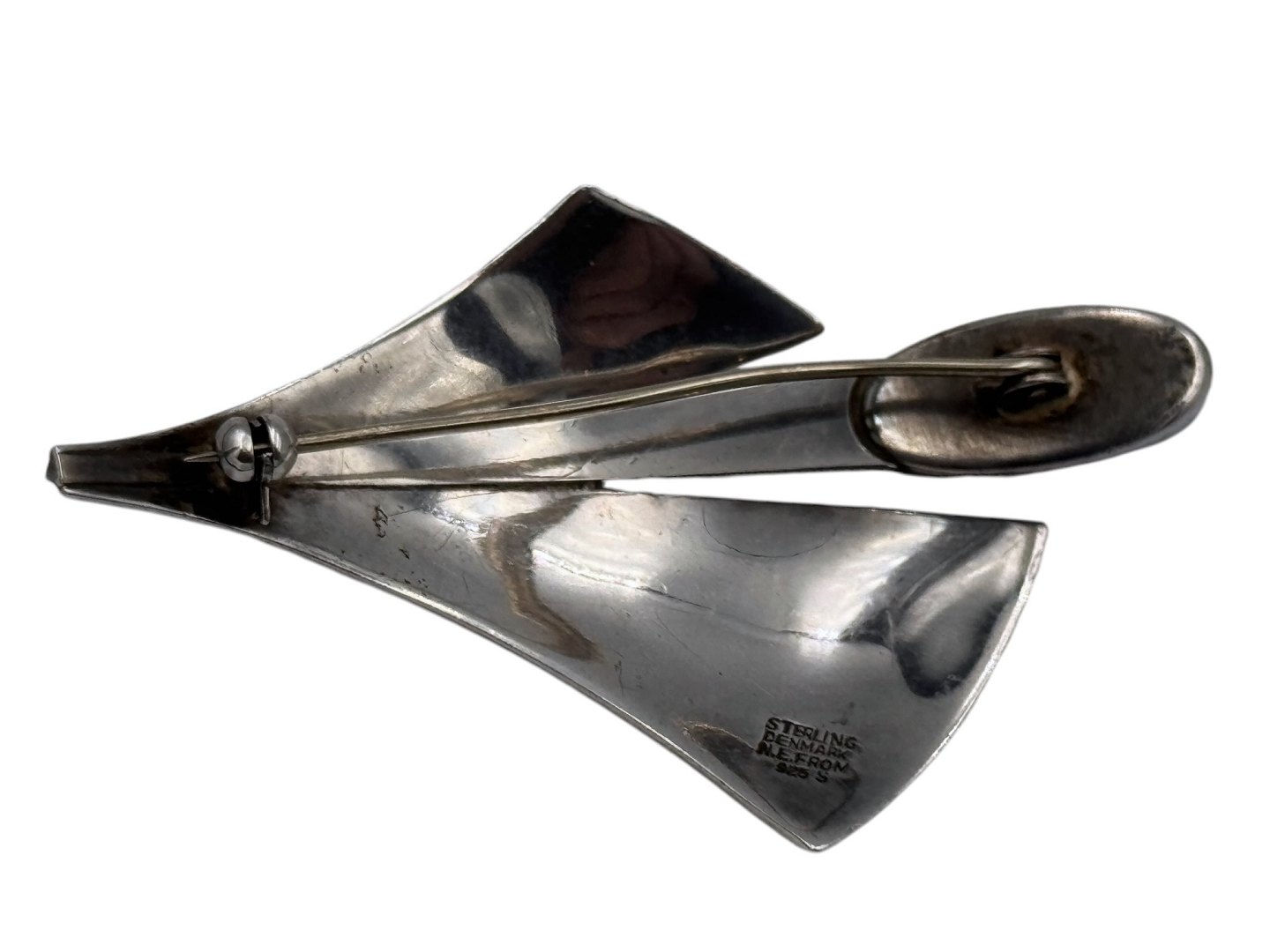 Niels Erik From sterlingsølv, stor og moderne broche med rav fra ca. 1950-1960.