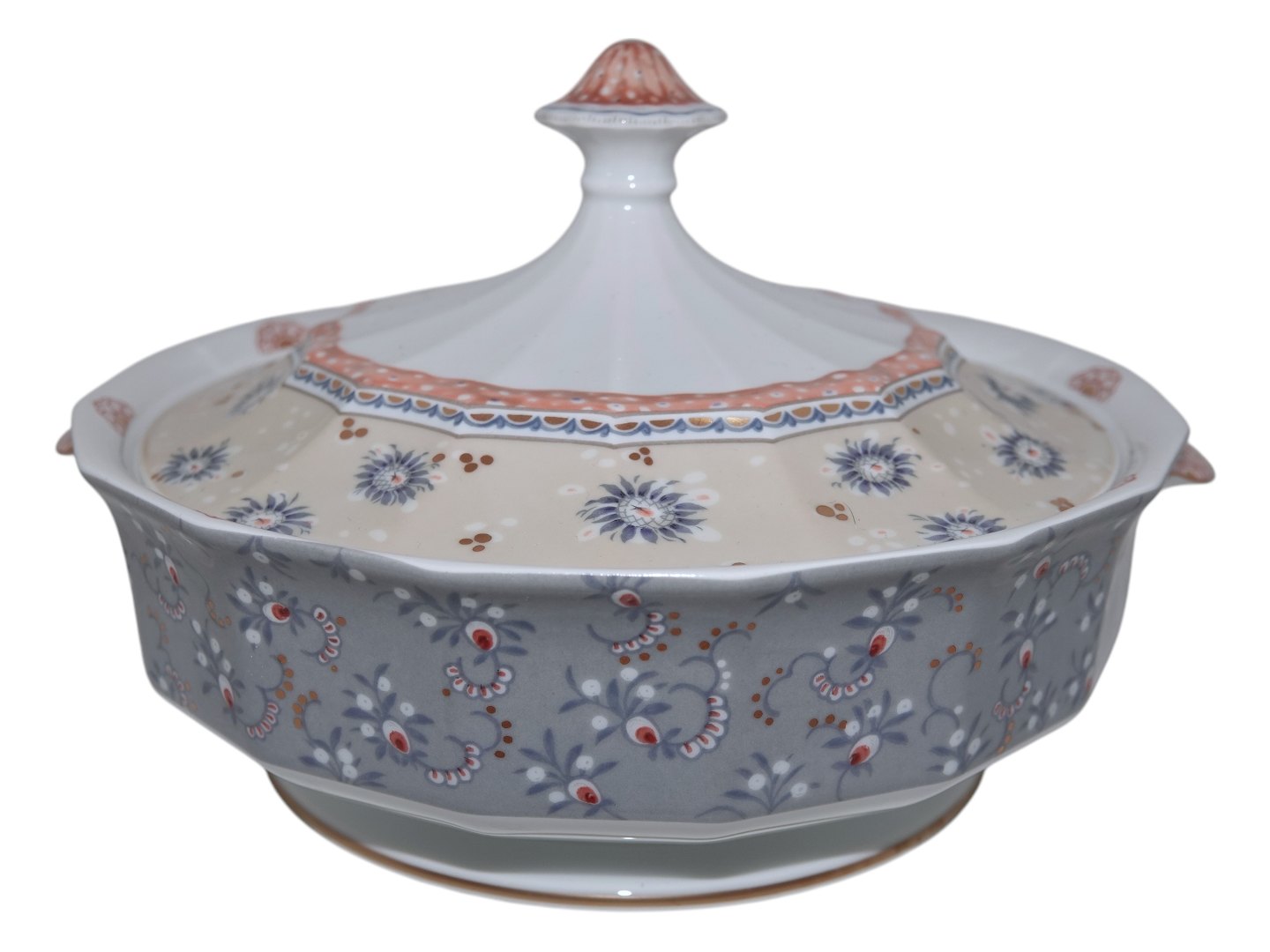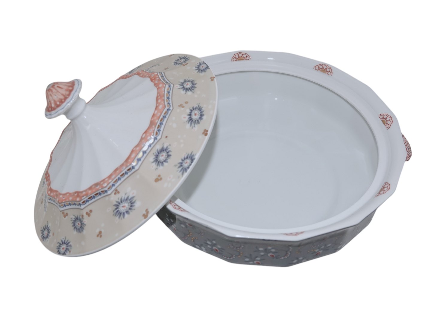 Royal Copenhagen Fairytale, lidded round bowl. Decoration number 173-174. Factory first. Diameter 21.9 cm. Perfect condition with no chips, cracks or repairs.