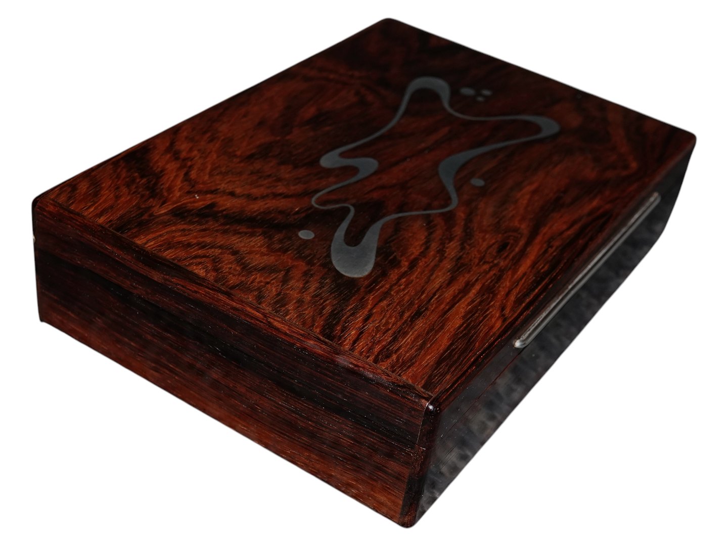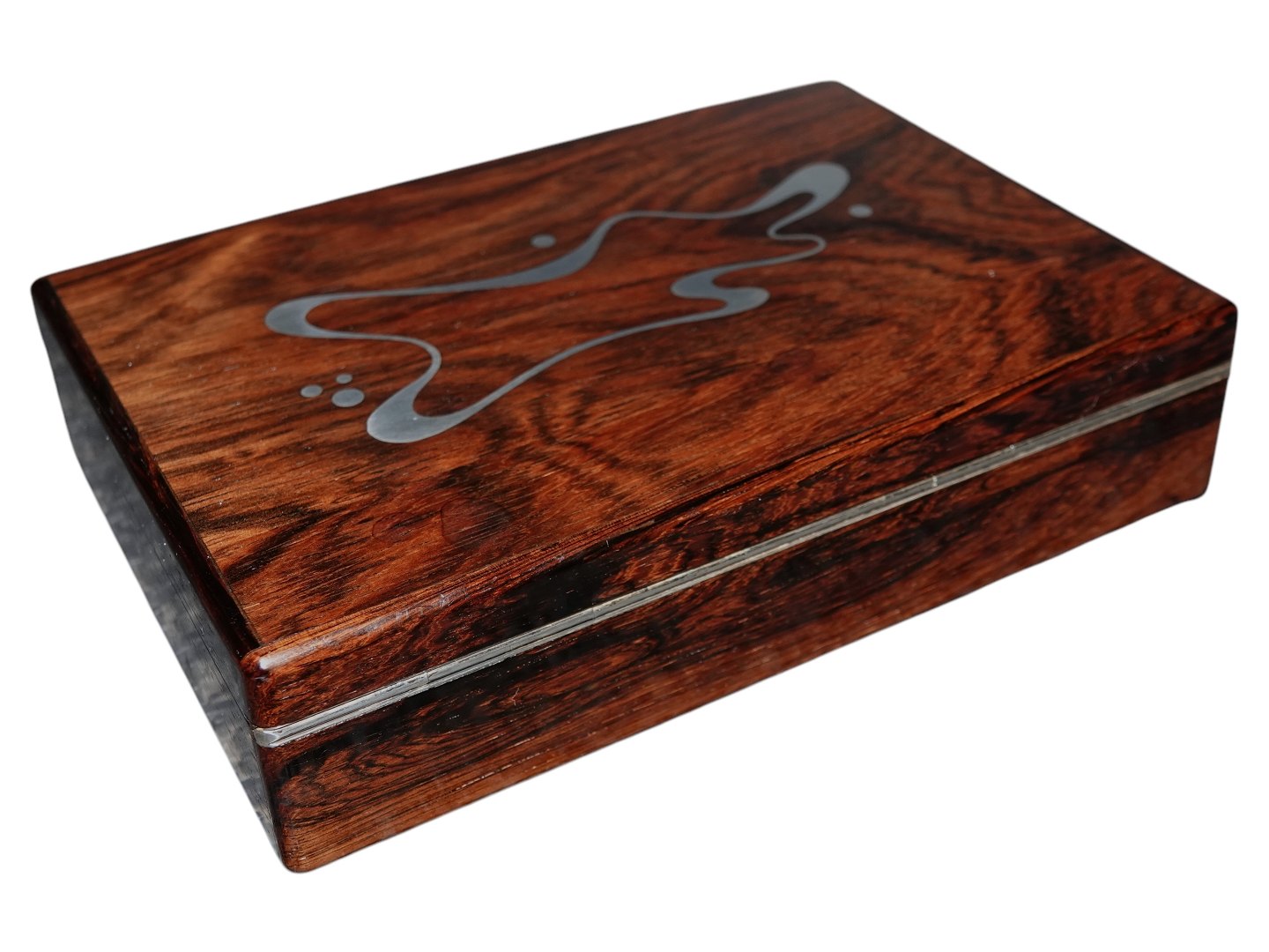 Større æske i Rio palisander med indlagt sterlingsølv fra 1960'erne.