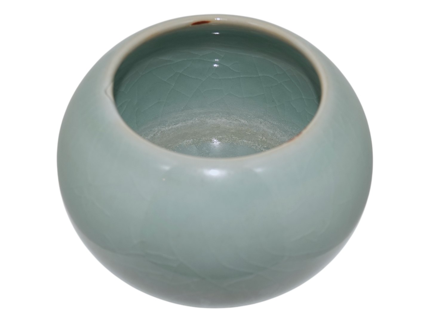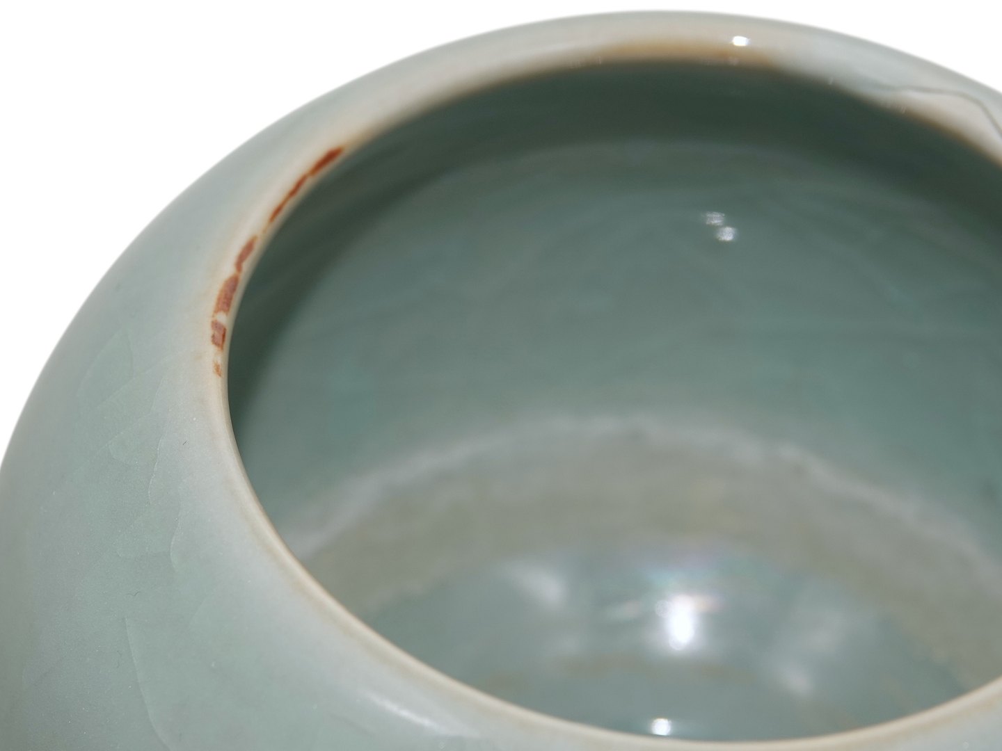 Marked as a factory second due to some glaze fault at edge (dark spots as seen in pictures) and what looks to be a crack, but it is totally glazed and it not felt. (Please see pictures).