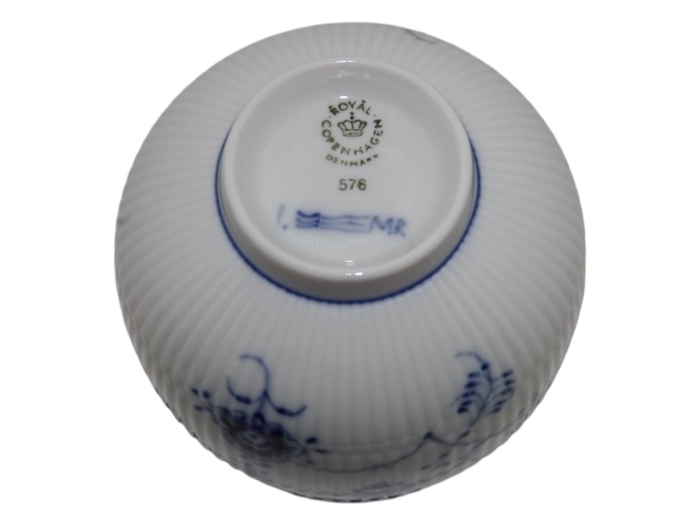 Royal Copenhagen Blue Fluted Plain, small round bowl. Decoration number 576. Factory second. Diameter 8.5 cm., height 5.6 cm. Perfect condition with no chips, cracks or repairs.