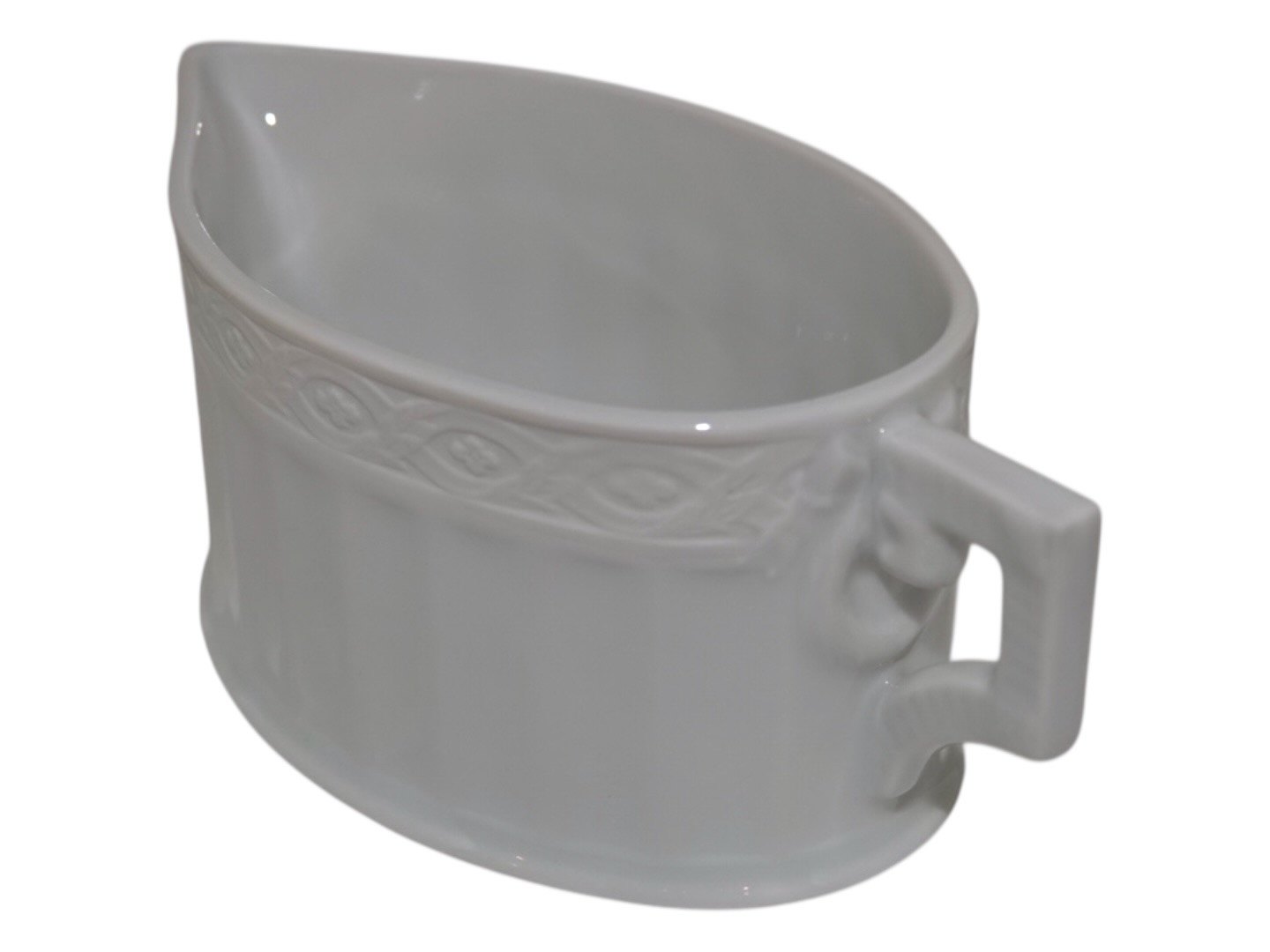 Royal Copenhagen White Fan, creamer. Designed by Arnold Krog in 1909. Decoration number 11541. Factory first. Length 12.0 cm. Perfect condition with no chips, cracks or repairs.