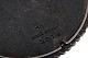 Georg Jensen mørk broche i jern og lidt sølv dekoreret med en fugl.