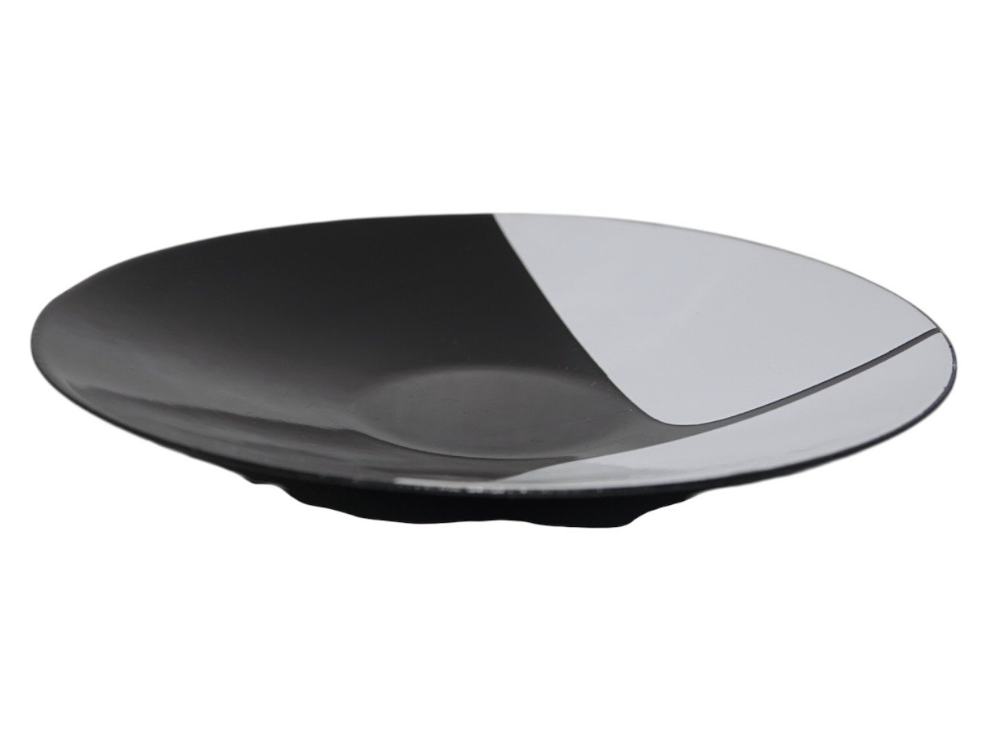 Ib Geertsen emaljefad med sort og hvid dekoration.