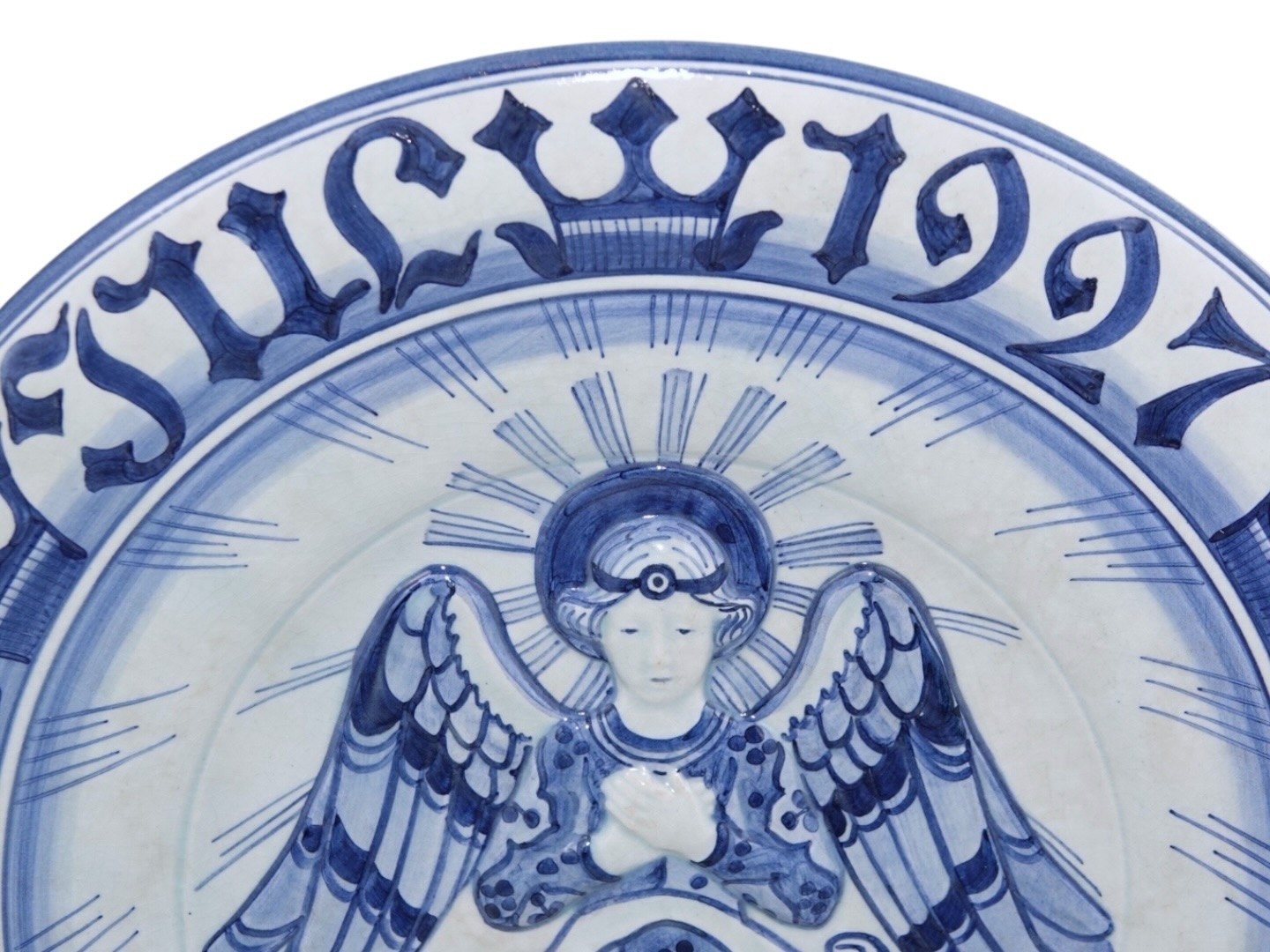 Aluminia Tranquebar, stor og sjælden set juleplatte fra 1927. Dekorationsnummer 4114/1353. 1. sortering. Diameter 30,5 cm. Der er krakkeleringer og små misfarvninger i glasuren ellers fejlfri stand uden fejl.