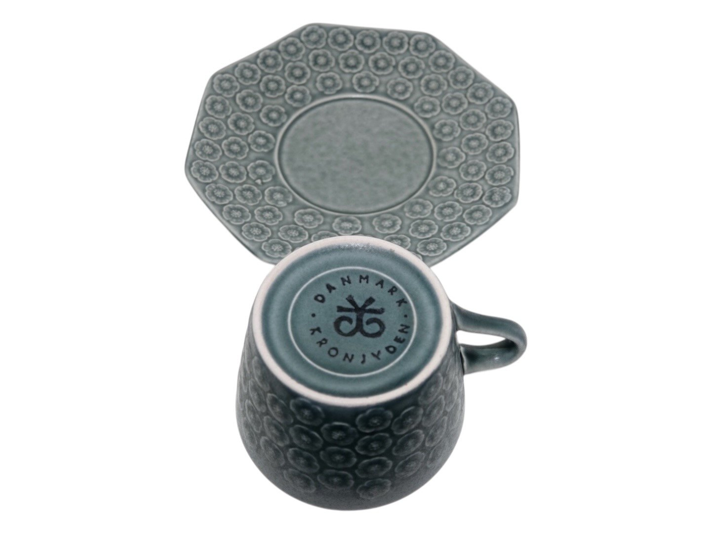 Kronjyden, Azur stentøj, kop med tilhørende underkop. Designet af Jens Harald Quistgaard. Diameter of the cup is 8.7 cm. Perfekt stand uden fejl.