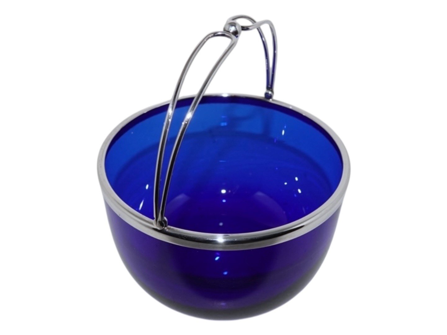 Kandisskål i blåt glas med Svend Toxværd ægte sølvkant og hank