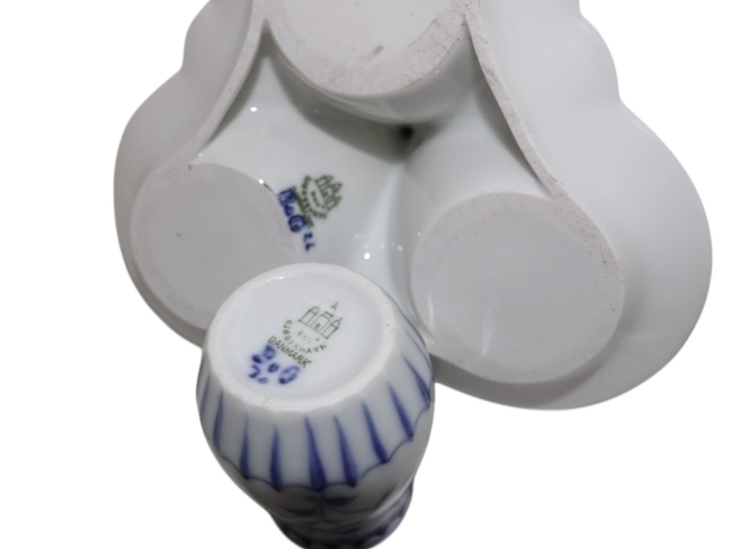 Bing & Grøndahl Sommerfugl Dickens, Plat de menage med sennepskrukke, salt- og peberbøsse med propper.