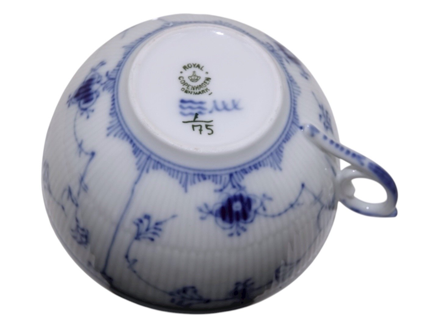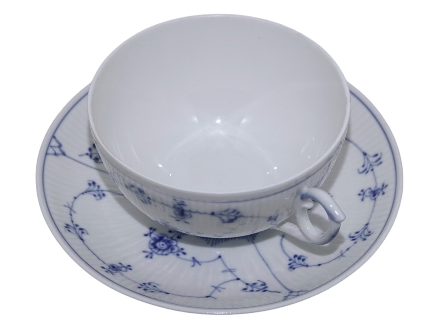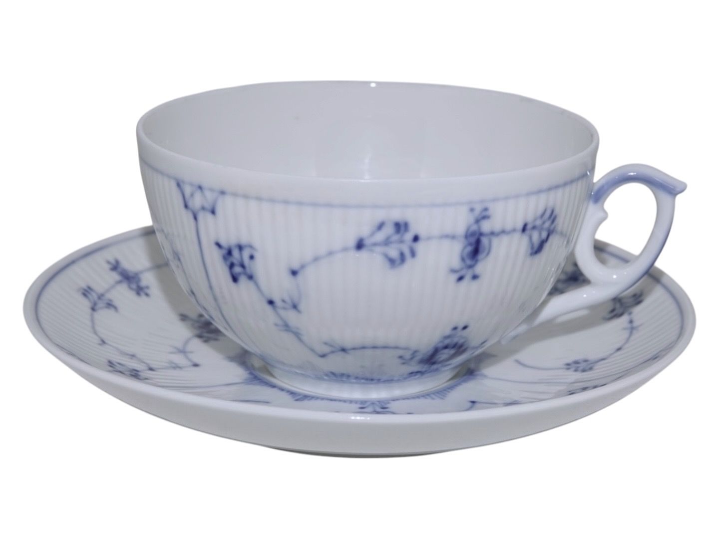 Royal Copenhagen Musselmalet Riflet, ekstra stor tekop også kaldet en kontorkop eller morgenkop.