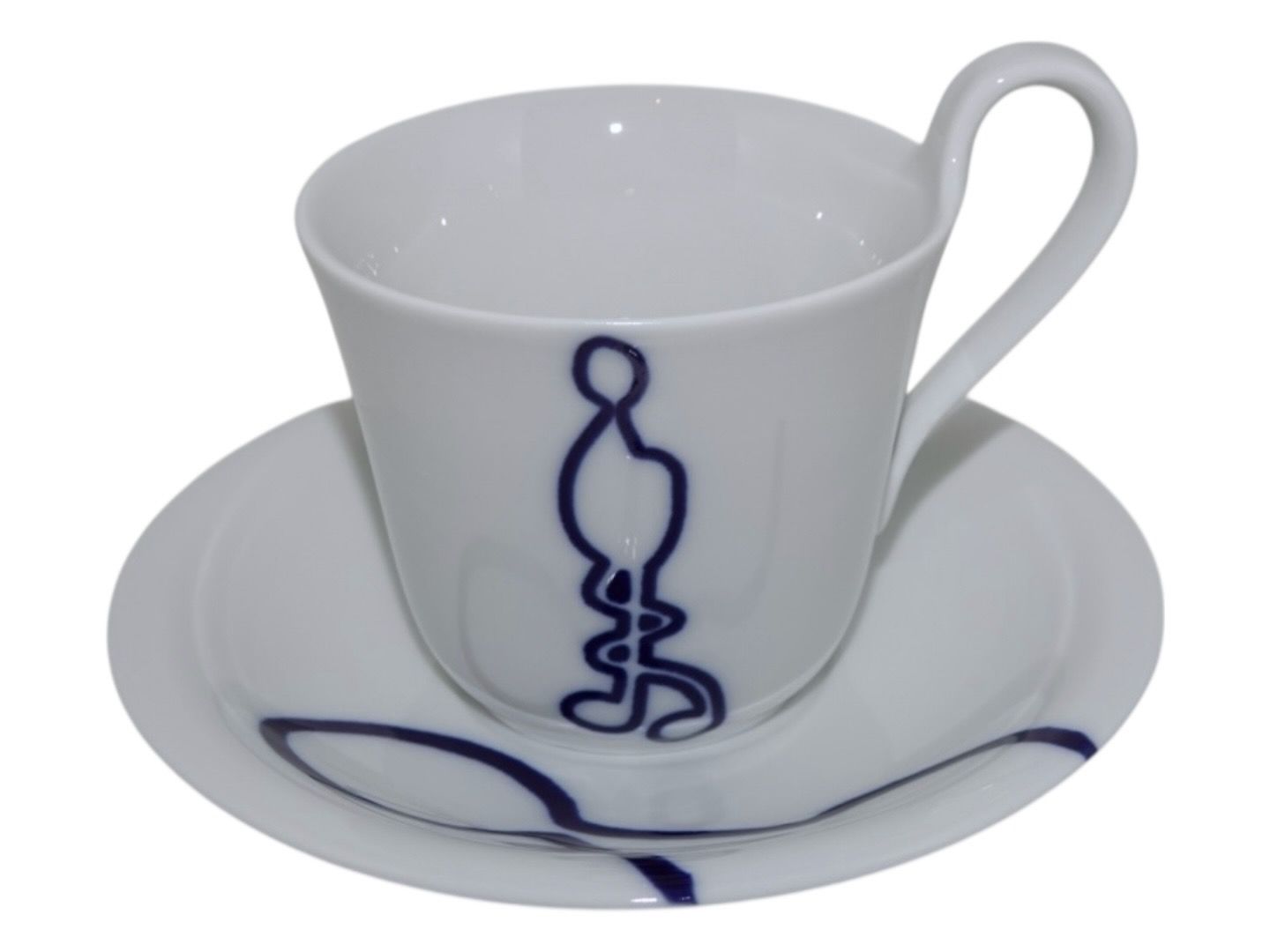 Royal Copenhagen Musica, high handle cup with matching saucer. Decoration E.