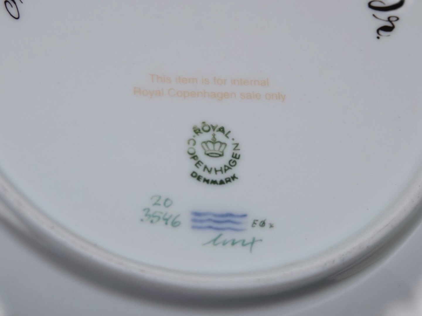 Solgt til Royal Copenhagen medarbejder så mærket som 3. sortering.