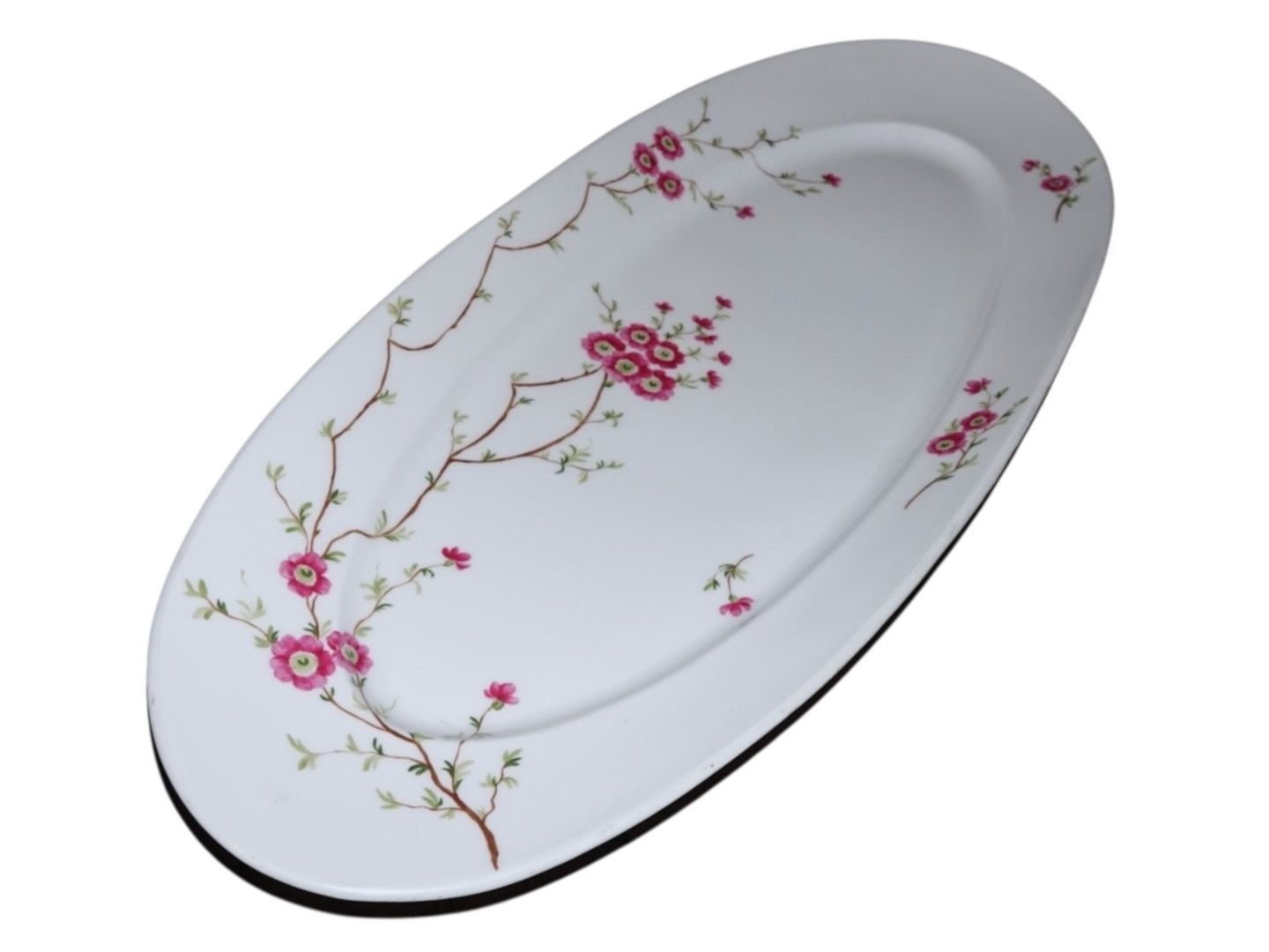 Royal Copenhagen Kirsebær, stort fiskefad dekoreret med pink kirsebærblomster. Stemplerne viser, at denne er produceret mellem 1894 og 1897. 1. sortering. Længde 60,0 cm. Perfekt stand uden fejl.