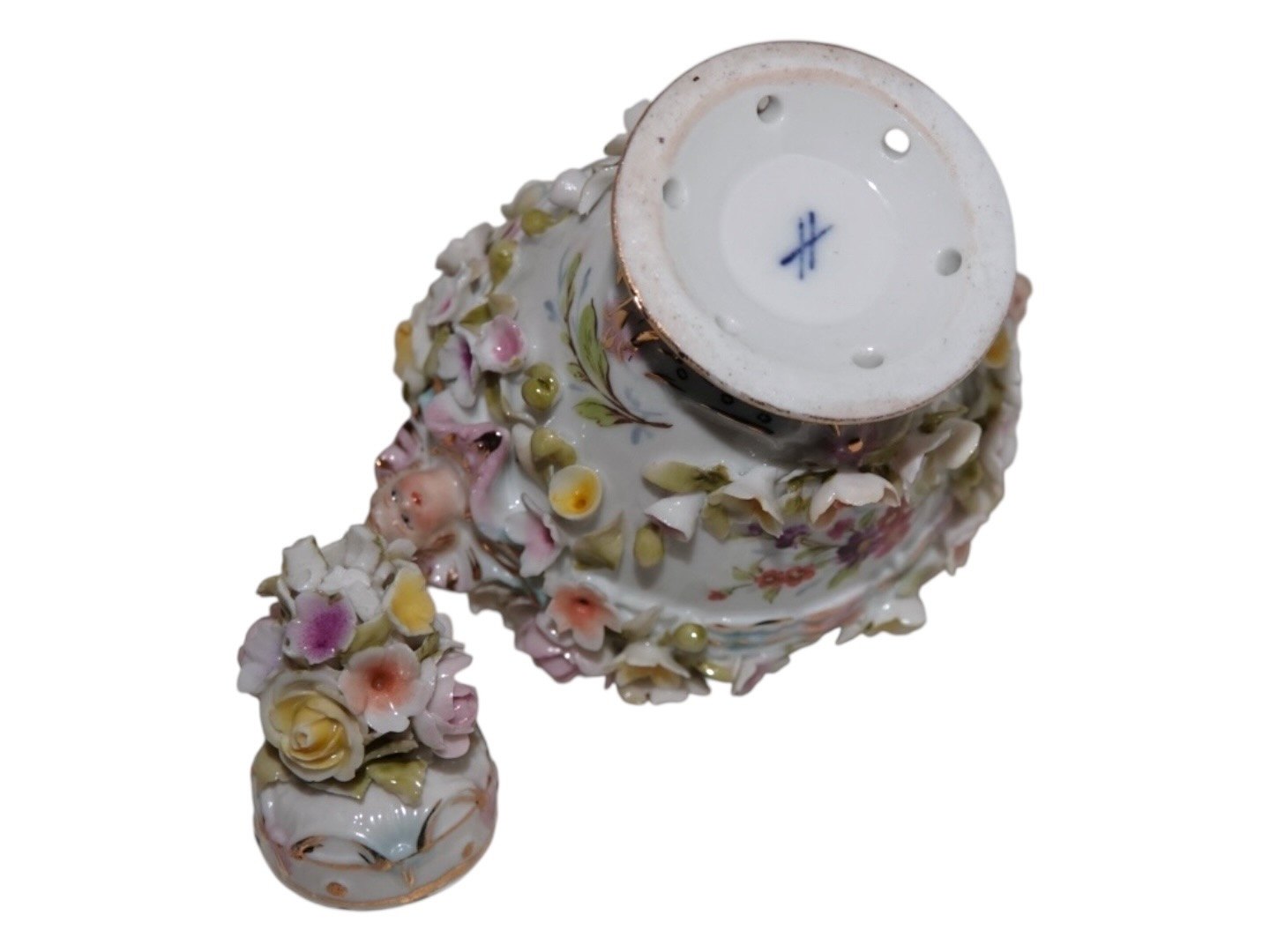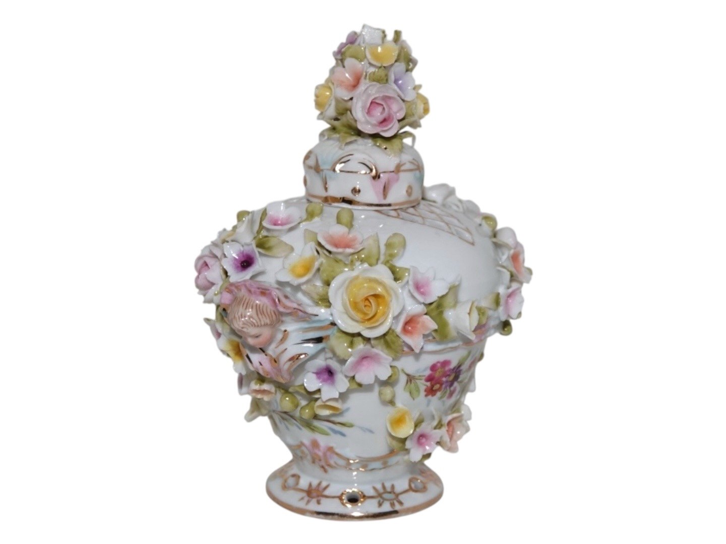 Porcelain from Germany, small lidded bottle with many flowers.